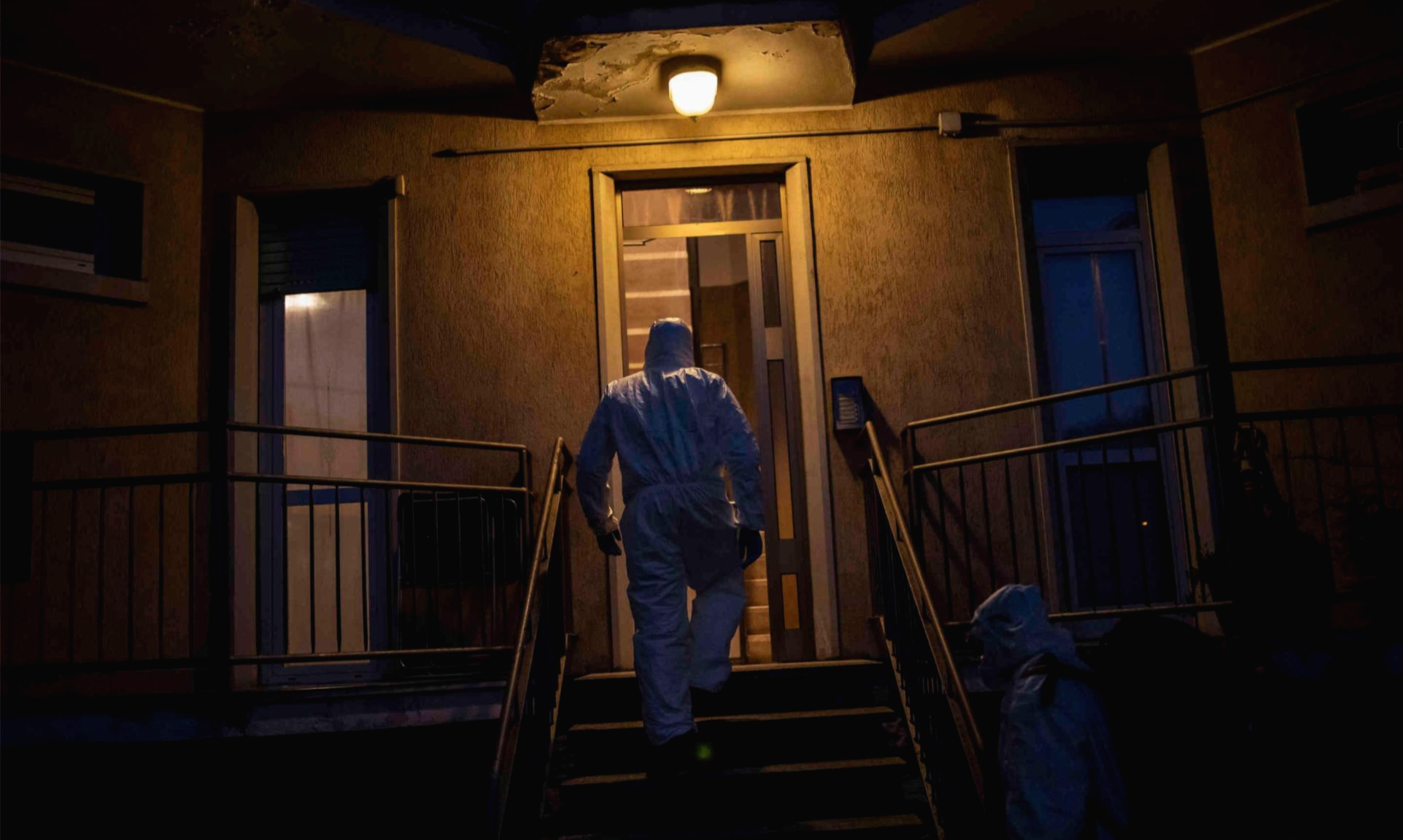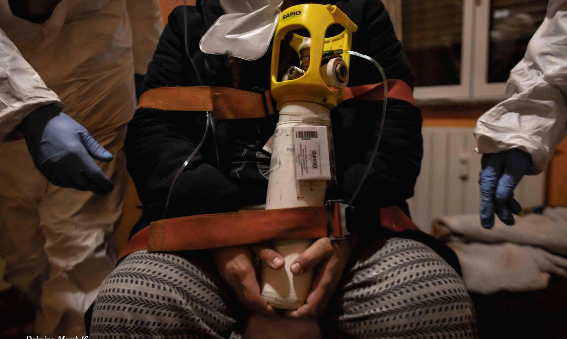 방문하는 많은 아파트에서 환자들은 가족들이 의사 처방으로 구입한 소다스트림 크기의 작은 산소 탱크를 차고 다닌다. 환자들은 가족들 옆의 침대에 누워 있고, 주방에서 가족들과 함께 식사한다. 그들은 소파에서 이탈리아의 사망자들과 감염자들에 대한 저녁 뉴스를 본다.