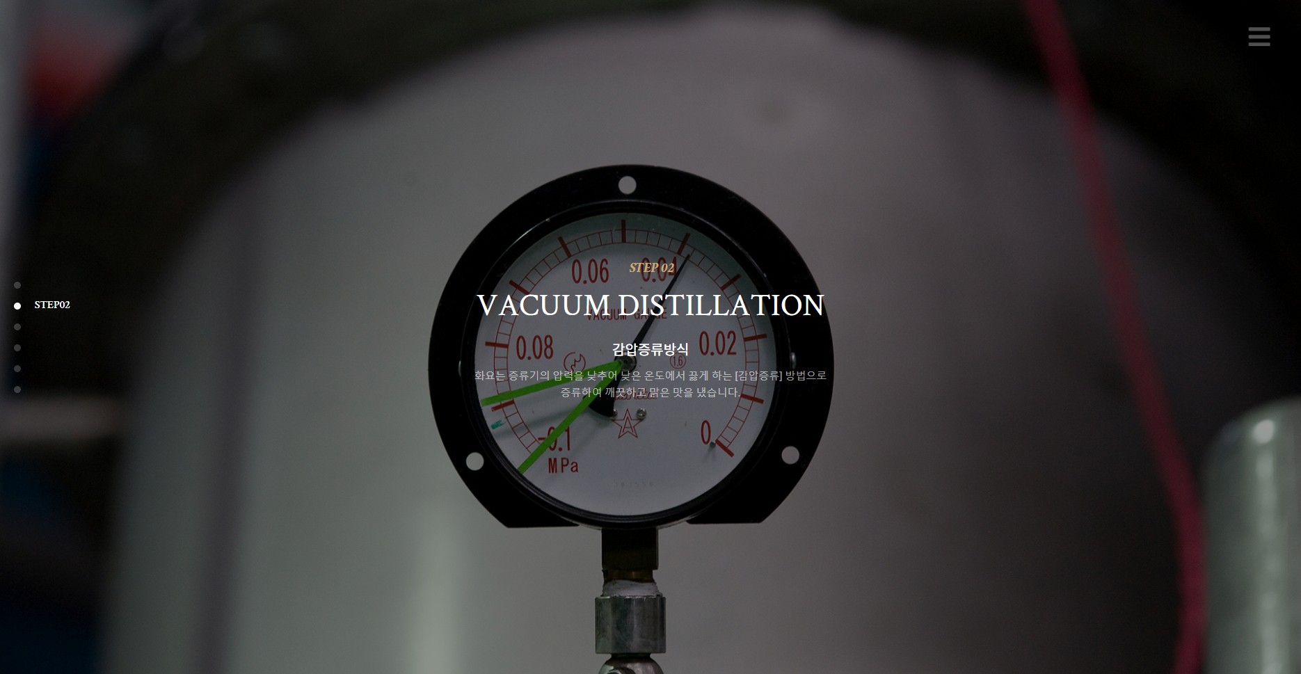 상압증류가 아닌 갑압 증류로 증류액에서 독한 맛과 향을 제어 할 수 있다. (장기 숙성하는 고도주는 여러 성분의 작용으로 다양한 맛을 낼 수 있기에 모든 증류에서 감압 증류가 유리하다고는 할 수 없음)
