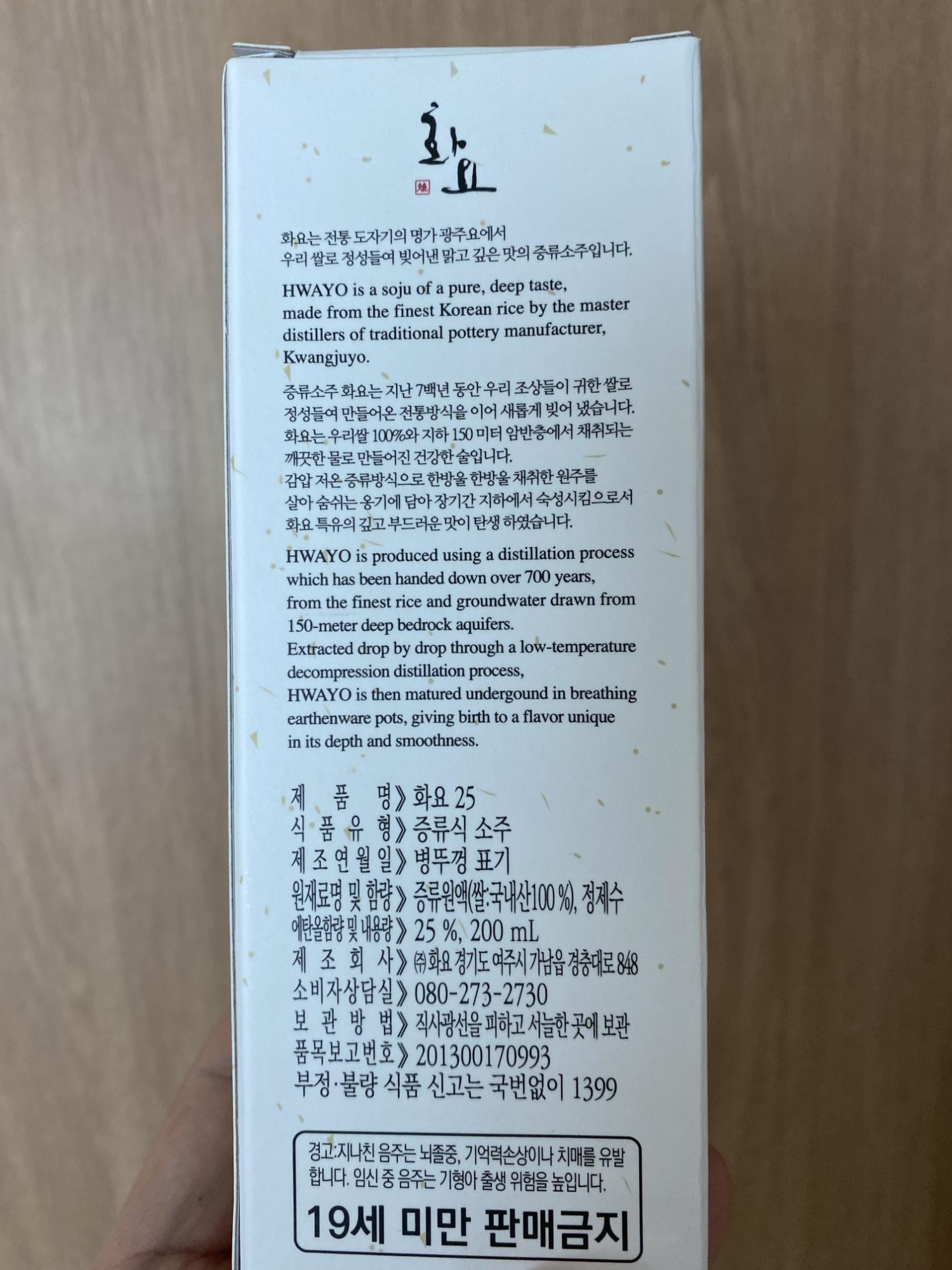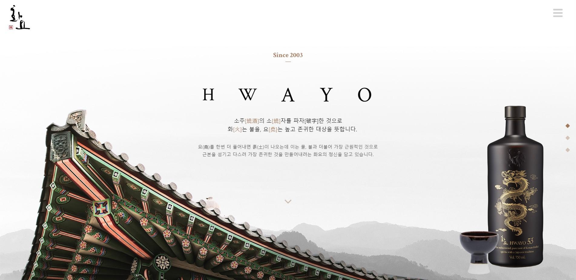 2005년 전통 도자기 브랜드 '광주요'에서 출시한 증류주 브랜드로, 국내 전통 주 업계의 선도적인 브랜드. 모기업이 도자기 제조업체인만큼 병 및 패키지 디자인이 유려하다. 화요(火堯)라는 이름은 이름은 소주의 소(燒)를 파자한 것이다.