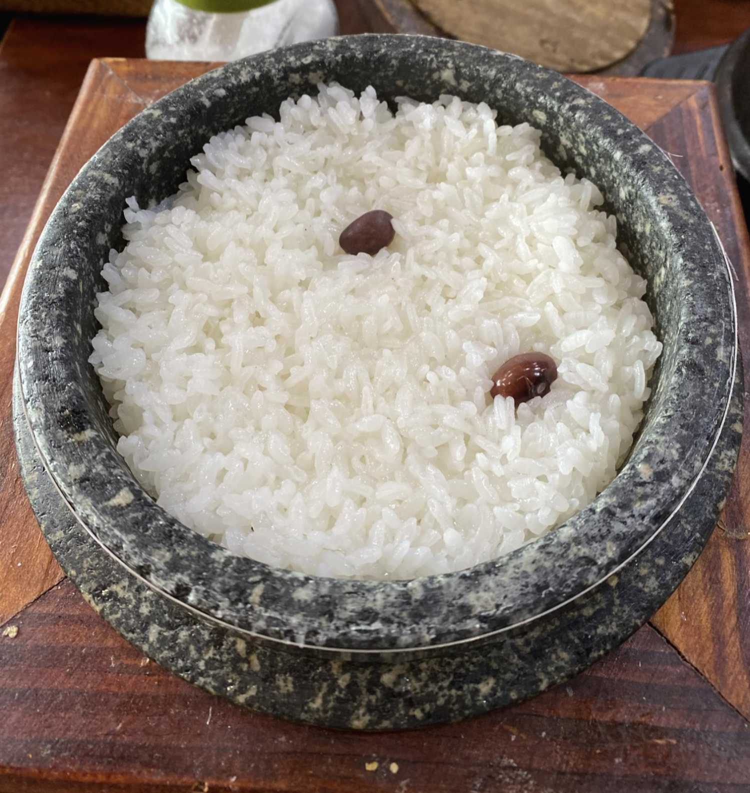 순두부정식을 주문하면 함께 나오는 밥, 공기밥은 별도로 주문이 되지 않는다.