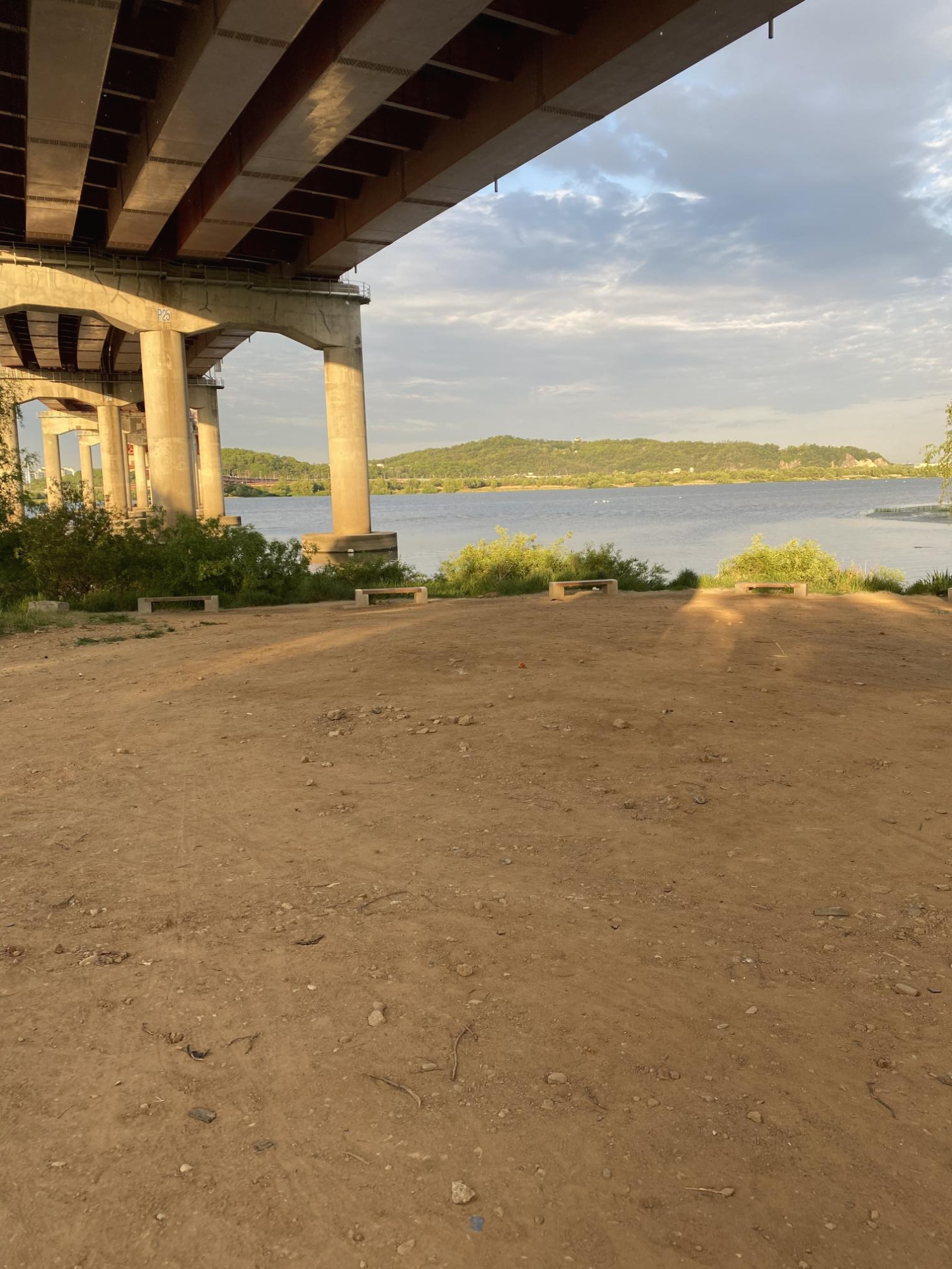 그러나 현실은 다리 밑이라는 사실. 잔디가 깔리지 않은 흙바닥... 살짝 좋지 않은 냄새도 난다.