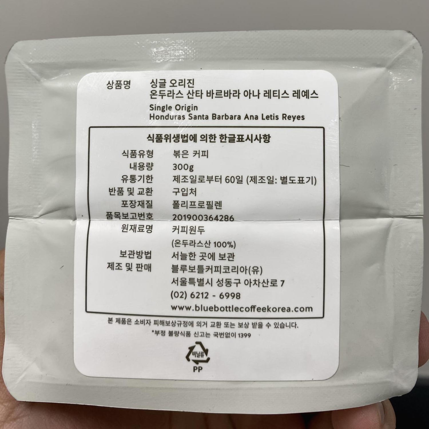블루보틀 매장 판매 커피 온두라스 싱글오리진 (blue bottle, Honduras Santa Barbara Ana Letis Reyes)