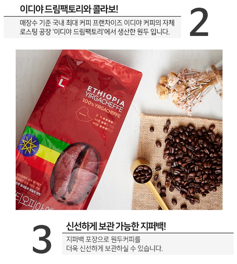 산지 강조, 이디야 드림팩토리 협업, 지퍼백이