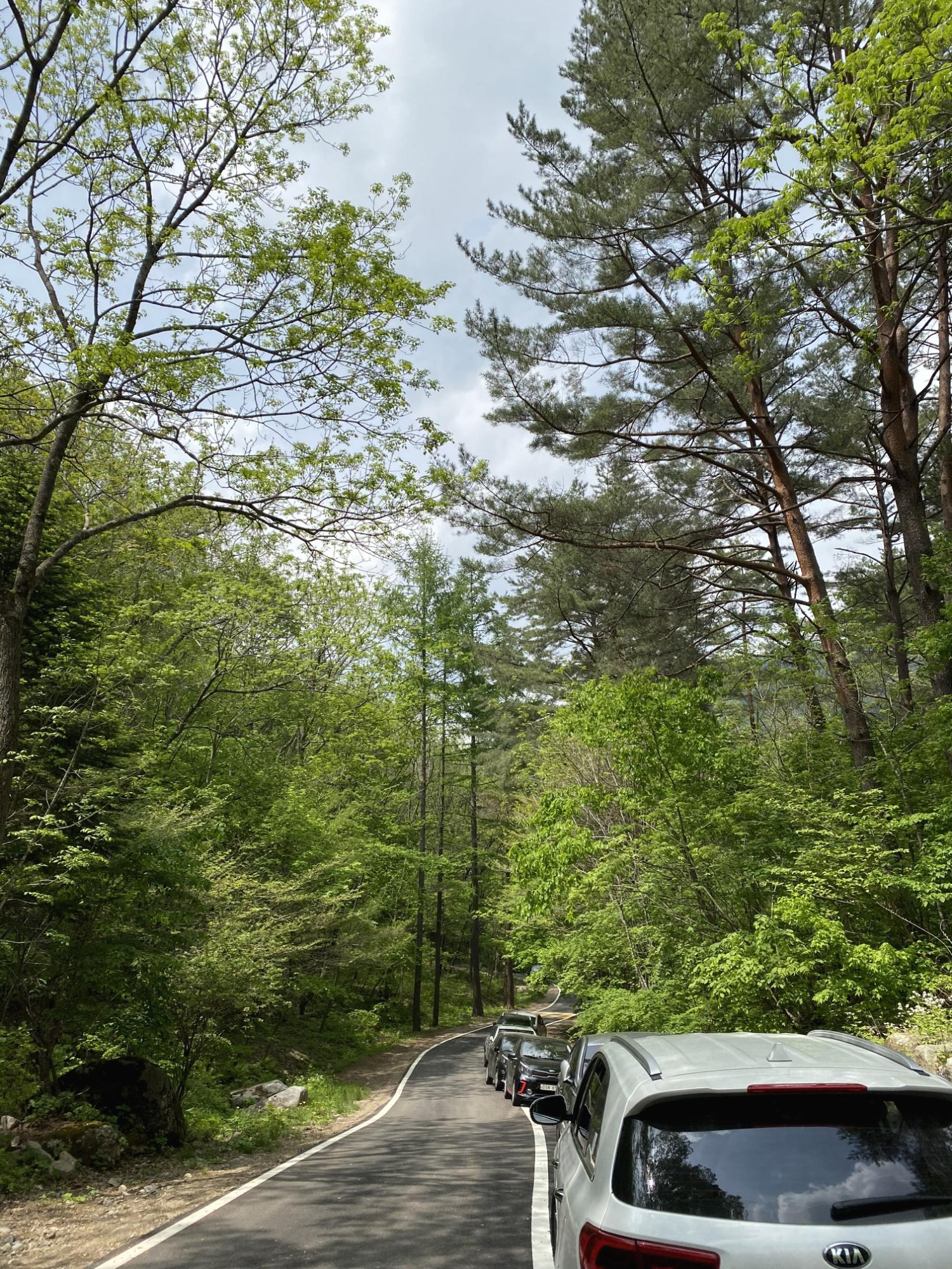 인제 여행의 마지막 날, 숙소에서 5분 거리에 있는 방태산 자연휴양림을 찾았다. 이틀 연속으로 고향집에서 아침식사를 하고, 다시 방태산 자연휴양림 방향으로 차를 돌렸다. 휴양림에 가까워 오자 길이 차 두대가 지나가기에는 좁은 곳이 있어서 운전하는 것이 조금은 까다로웠다.