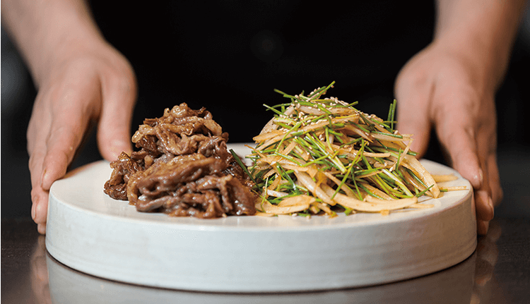 "원테이블 우미학 차돌 깍두기 볶음밥은 숙성 한우 전문점으로 유명한 우미학의 별미인 차돌 깍두기 볶음밥을 그대로 재현한 것이 특징이다. 우미학의 노하우가 담긴 숙성 깍두기 레시피로 만든 특제 소스와 차돌양지, 차돌박이로 고소한 맛을 냈다. 1인분 기준(231g)에 소고기 함량이 60g에 달한다. 밥도 쌀알이 크고 찰기가 좋은 신동진미를 사용, 가마솥 직화방식으로 만들어 식감을 차별화했다."