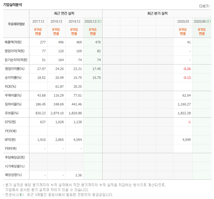 네이버 증권의 재무 정보이다.