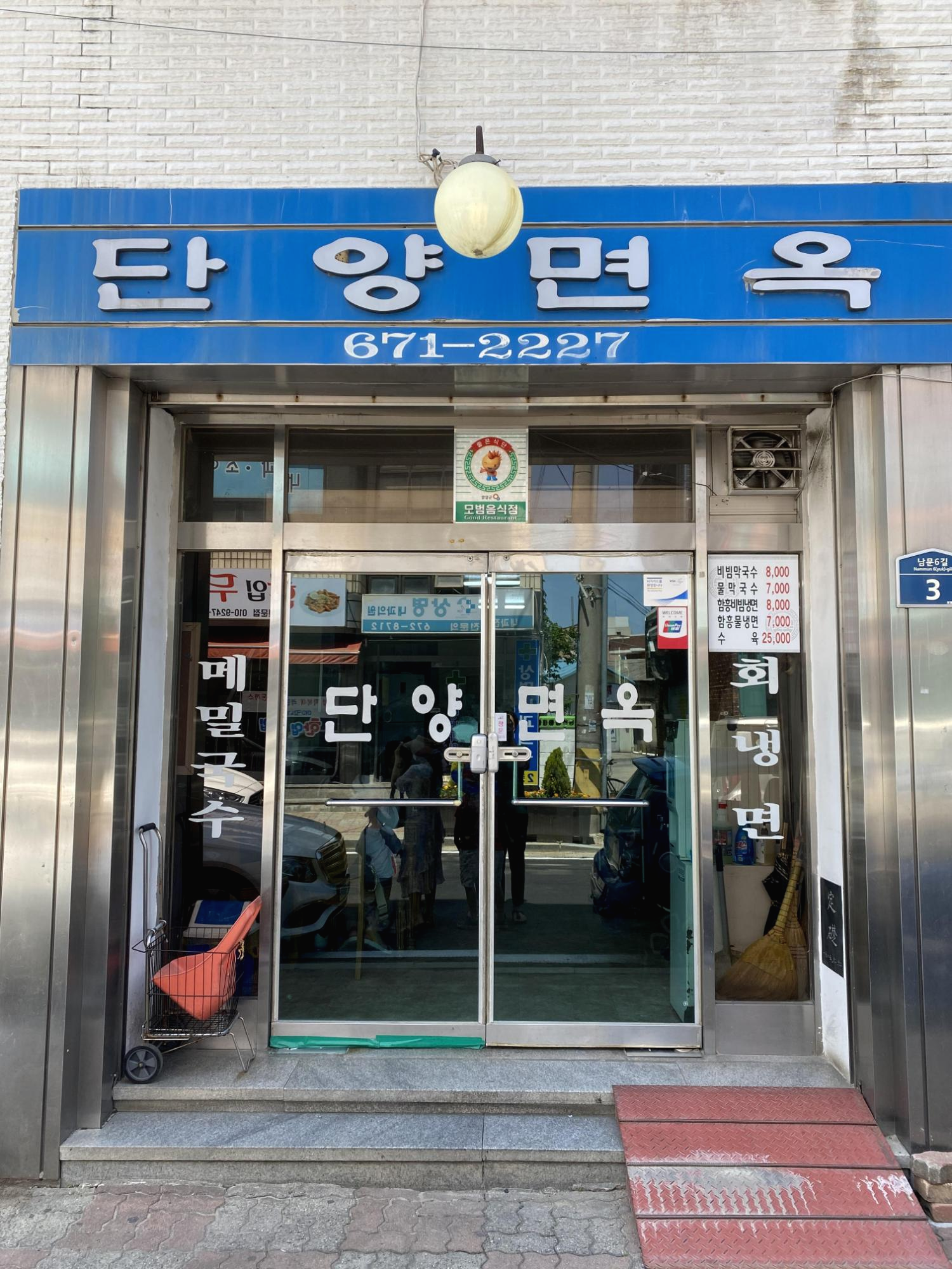단양면옥의 오래된 간판과 입구의 모습이 심상치 않다. 맛있을 것 같은 예감, 포스가 느껴진다.