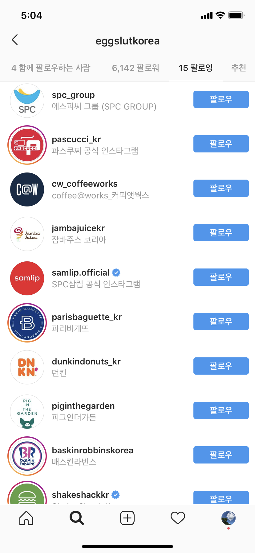 인스타그램 계정은 이미 오픈했다. CPA 광고를 집행했는지 모르겠지만 벌써 팔로워가 6천명이 넘었다. 그 만큼 관심을 가지고 있는 사람이 많다는 것일까? 팔로잉 계정은 모두 SPC가 운영하고 있는 브랜드들이다.