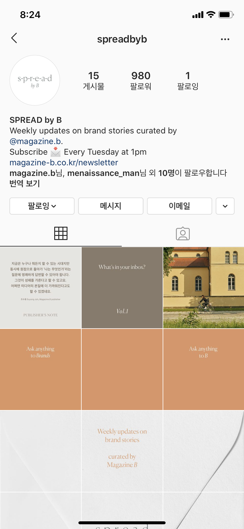 매거진B의 인스타그램 공식계정을 팔로우하고 있는데, 반가운 소식을 들었다. 최근 많은 콘텐츠 크리에이터들이 만들어 내는 뉴스레터를 매거진 B도 곧 발송하기 시작한다는 소식이었다. 주저없이 구독을 신청했다.