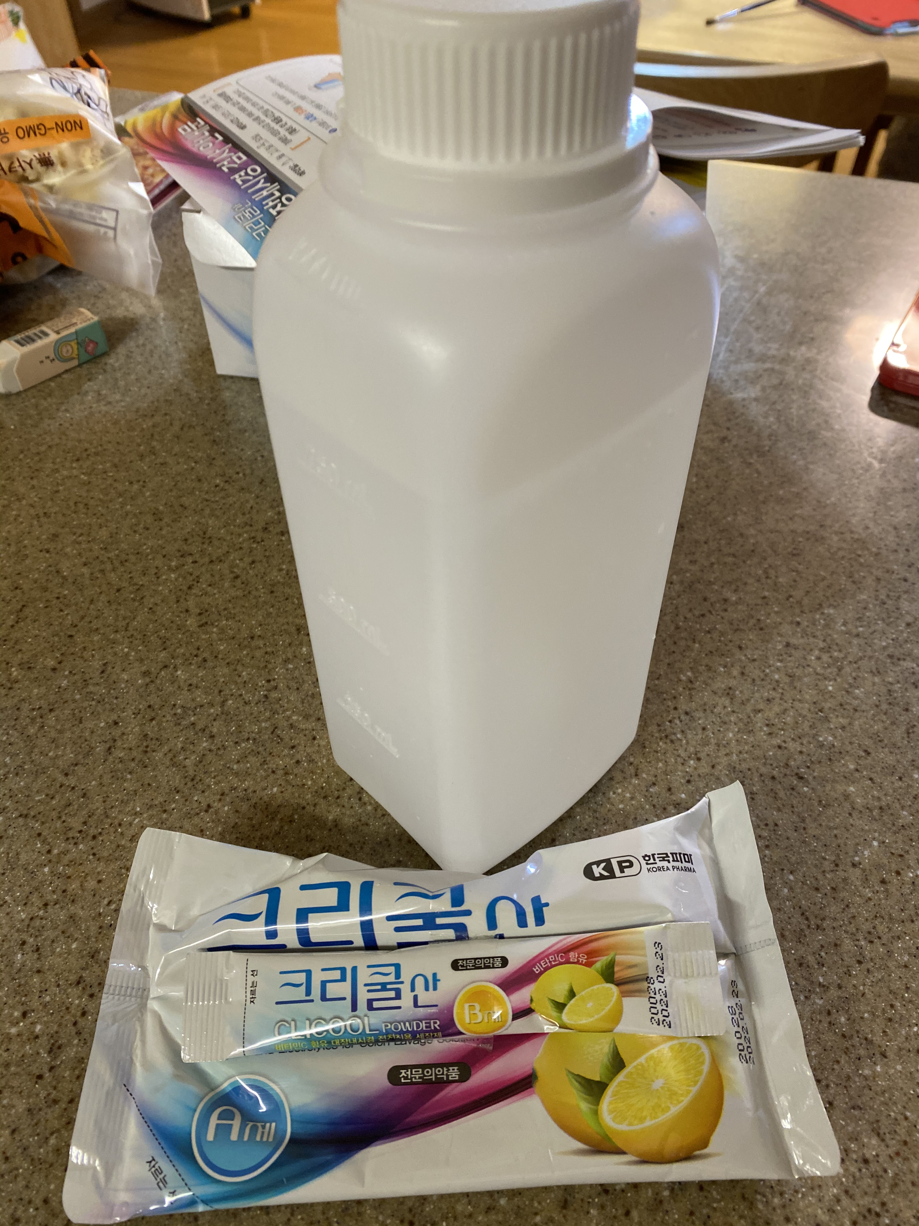 건강 검진 수검 병원에서 택배 상자가 와서 개봉해보니 상자가 있었고, 그 상자를 여니 아래와 같이 무서운 1리터 짜리 물통이 등장했다. 통만 봐도 긴장되는 이 상황. 10년전에 꾸역 꾸역 약탄 물을 마셔가며 속을 비워내던 생각을 하니 참 걱정이 앞섰다.