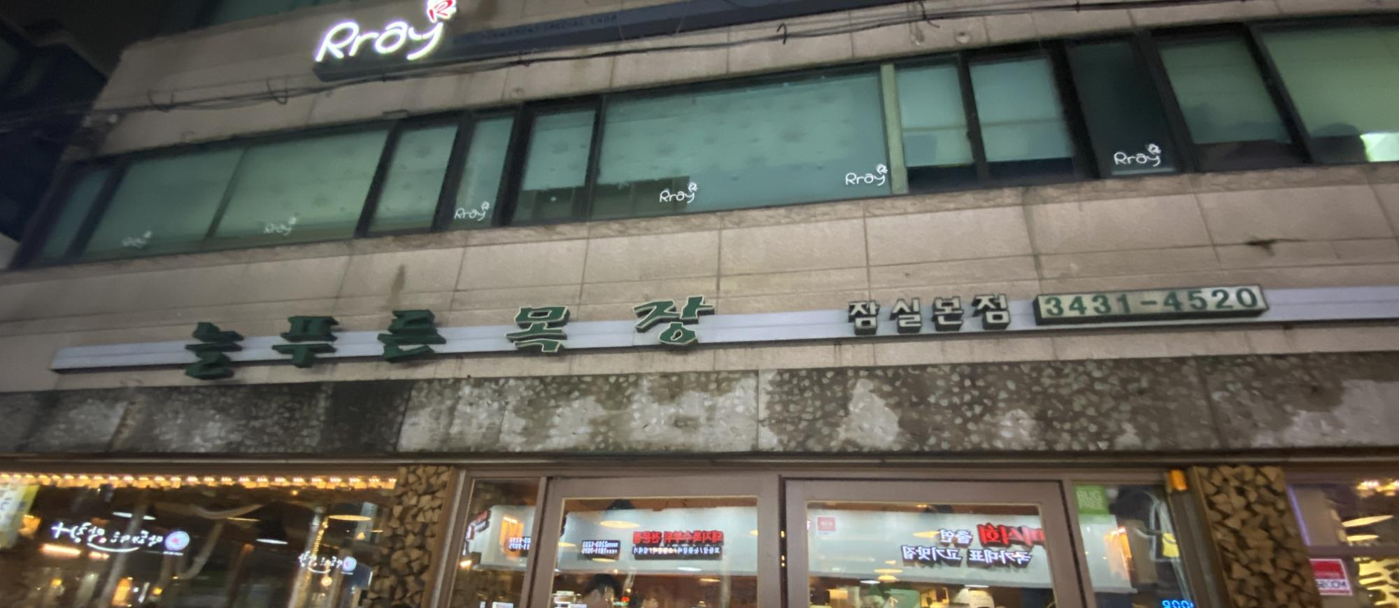 모처럼 회사 - 집 근처가 아닌 곳으로 나들이를 다녀왔습니다. 정기적으로 만나는 친목 모임이 있는데, 이번에는 약속 장소가 잠실이었습니다. 그야말로 억수처럼 쏟아지는 비를 뚫고 약속 장소로 향했습니다. 약속 장소는 늘푸른목장 잠실 본점이었습니다. 매우 유명한 집이라고 하더라구요.