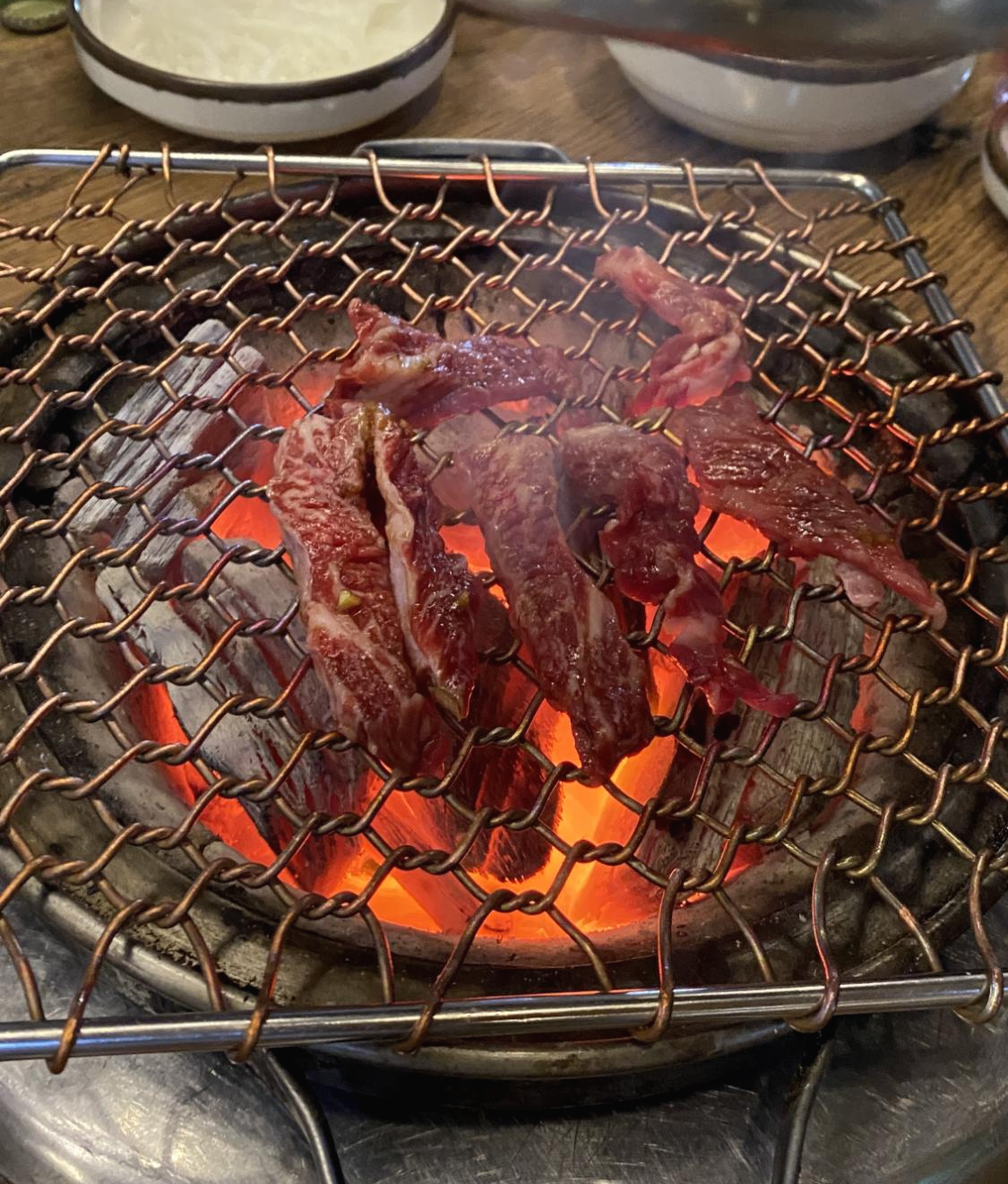 그런데 잘 구운 고기 한 점을 먹어보니 생각이 달라집니다. ㅎㅎ '너무 맛있다' 맛있는 소고기는 입에서 녹는데, 순식간에 녹고 마네요. 남자 넷이서 먹는 속도가 참으로 빠릅니다. 경주갈비살 100g 18,000이 싼 가격은 아니지요. 그럼에도 불구하고 추가 주문합니다.