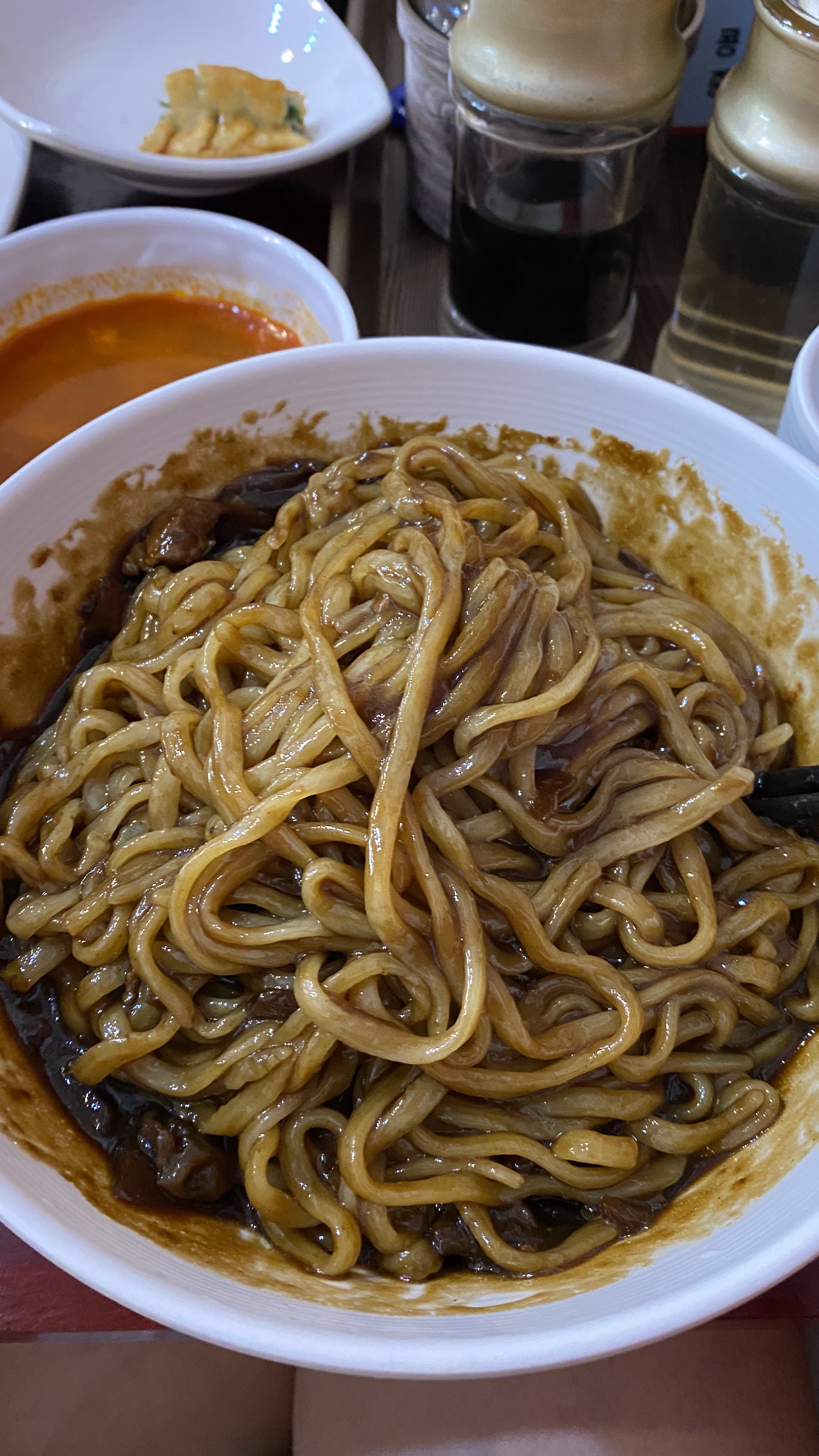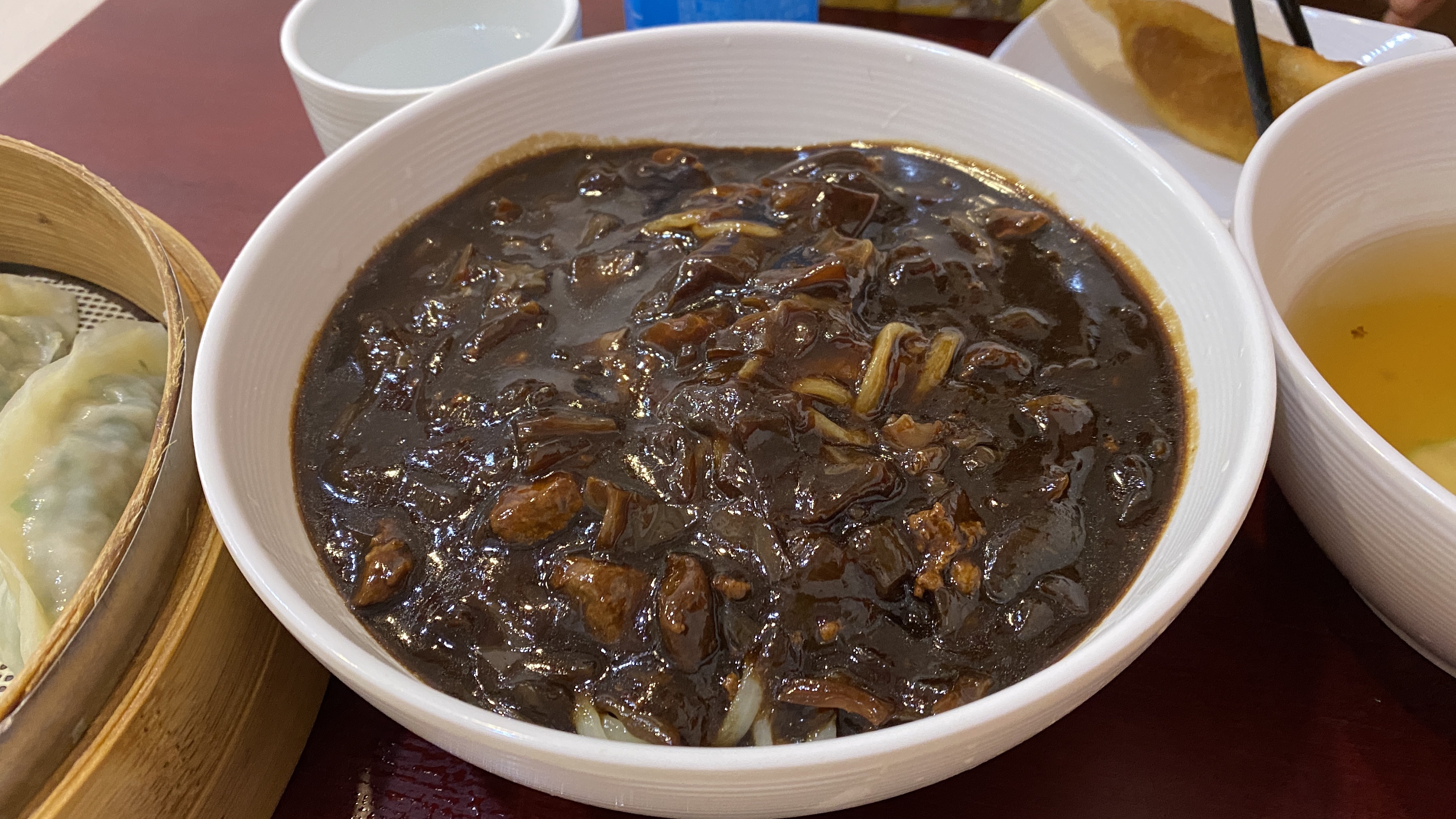 짜장면 곱배기입니다. 사실 짜장면은 좀 제 입맛에 맞지는 않았던 것 같습니다. 독특한 향이 있었던 것 같은데, 제 취향은 아니더라구요. (개인취향이니 오해 없으셨으면 합니다) 그래도 그럭저럭 먹을만 했습니다.