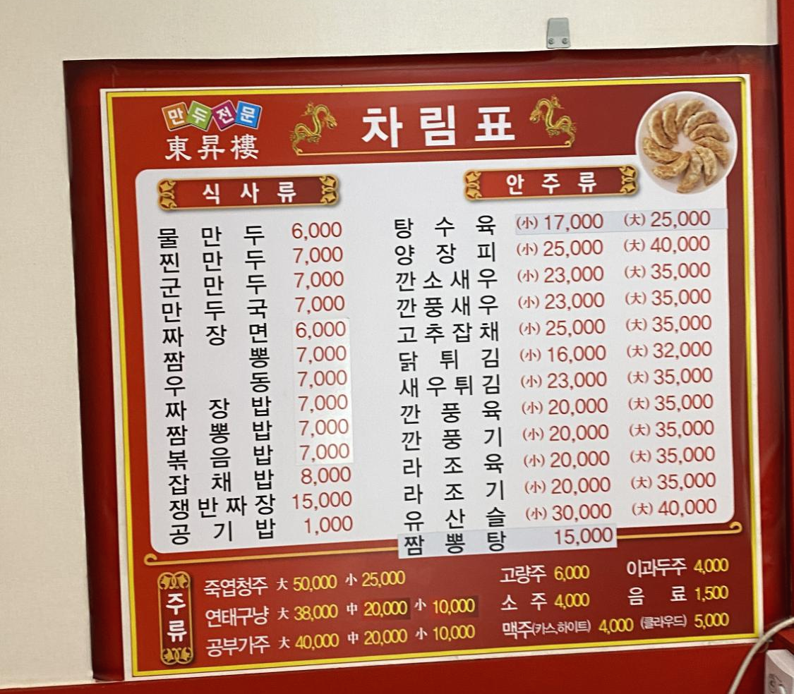 메뉴판입니다. 이 집의 시그니처 메뉴인 군만두는 7,000원입니다. 그 외 물만두 6,000원, 탕수육 小 17,000 입니다. 아침을 제대로 먹지 못해 배가 고프기도 했고, 기대가 커서 이것 저것 많이 주문했습니다. 그렇습니다. 자제를 못했죠 ㅎㅎ