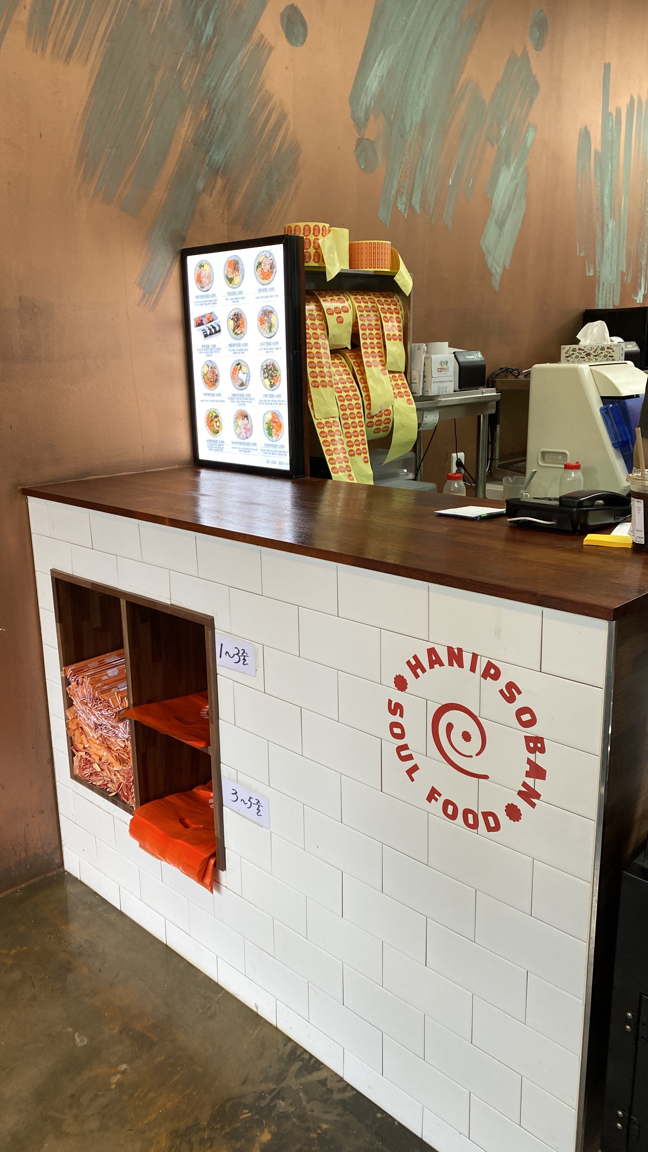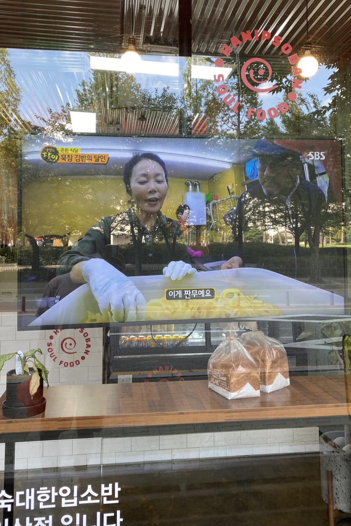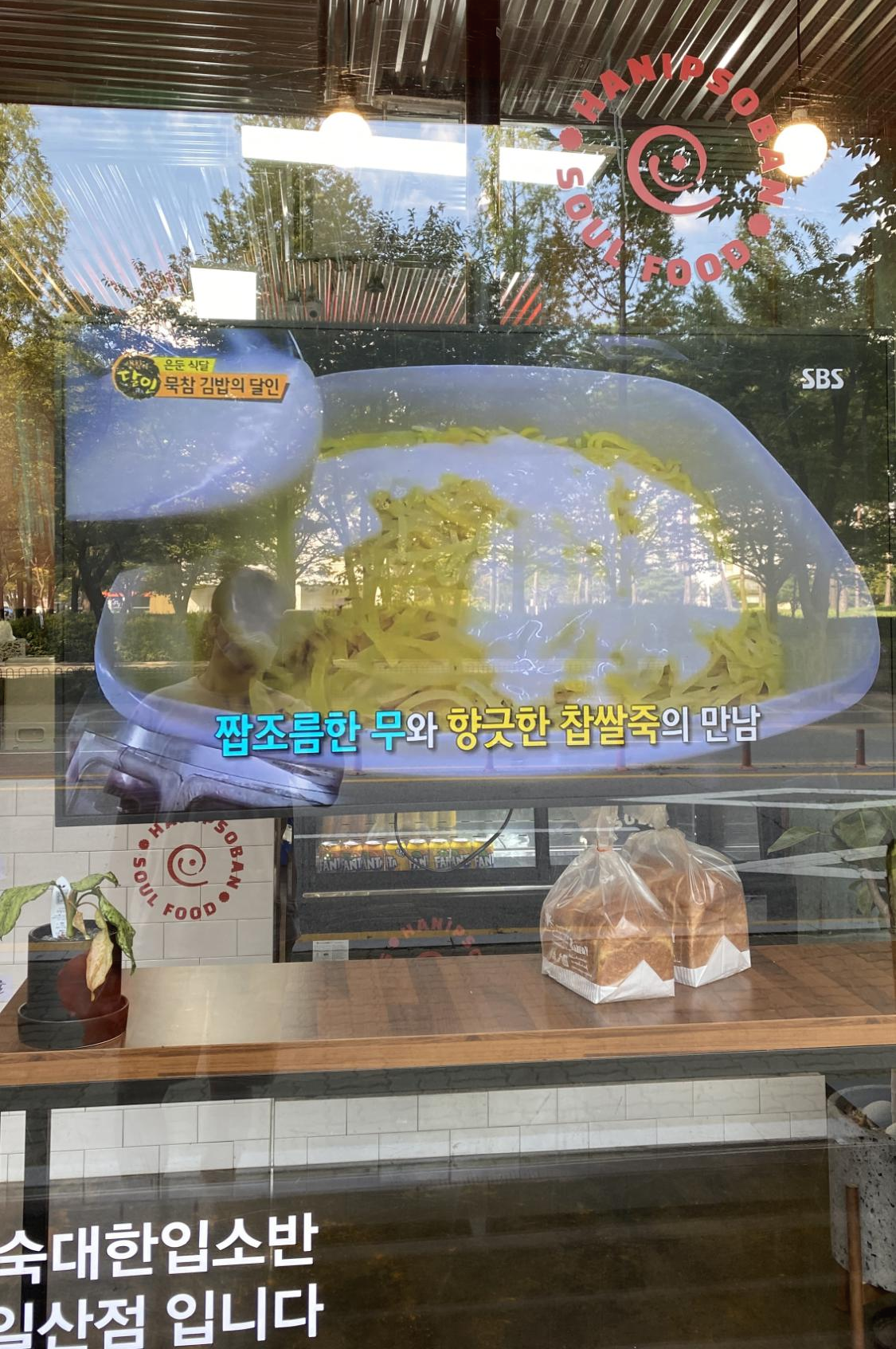 밖에서 보이는 모니터에는 티비에 출연한 한입소반의 모습이 나오고 있습니다. 전참시 외에도 생활의 달인에도 나왔나보네요. 매장에도 디스플레이를 해놓았네요.