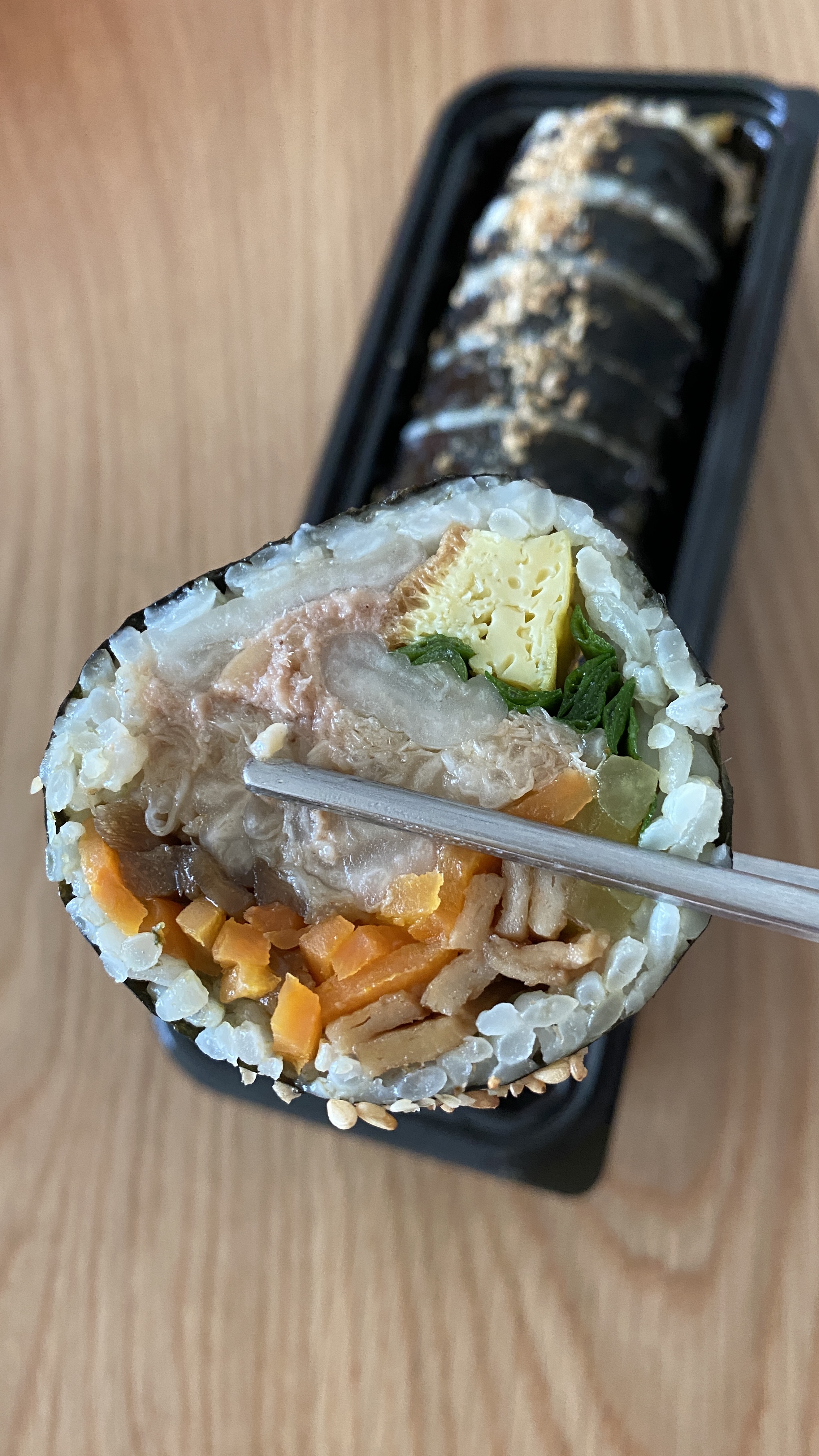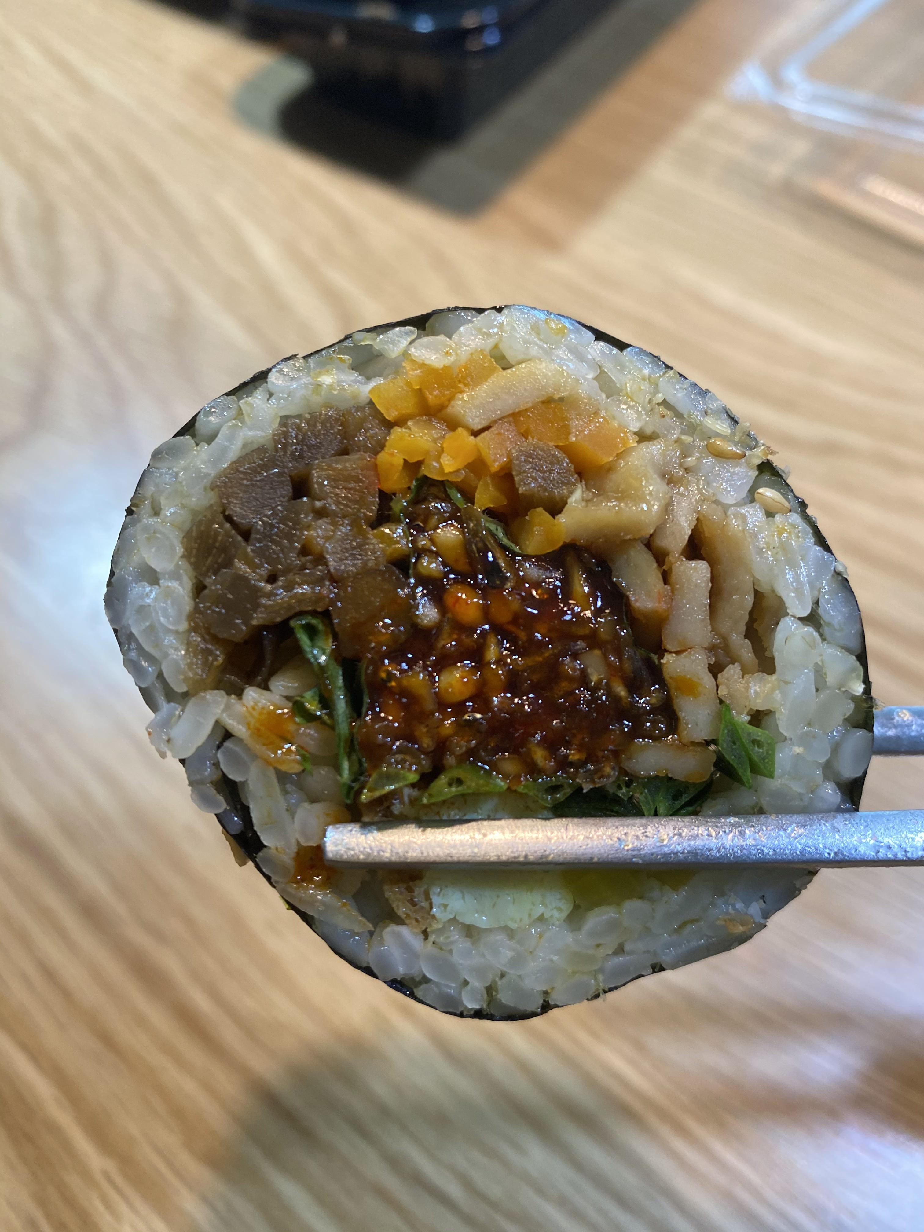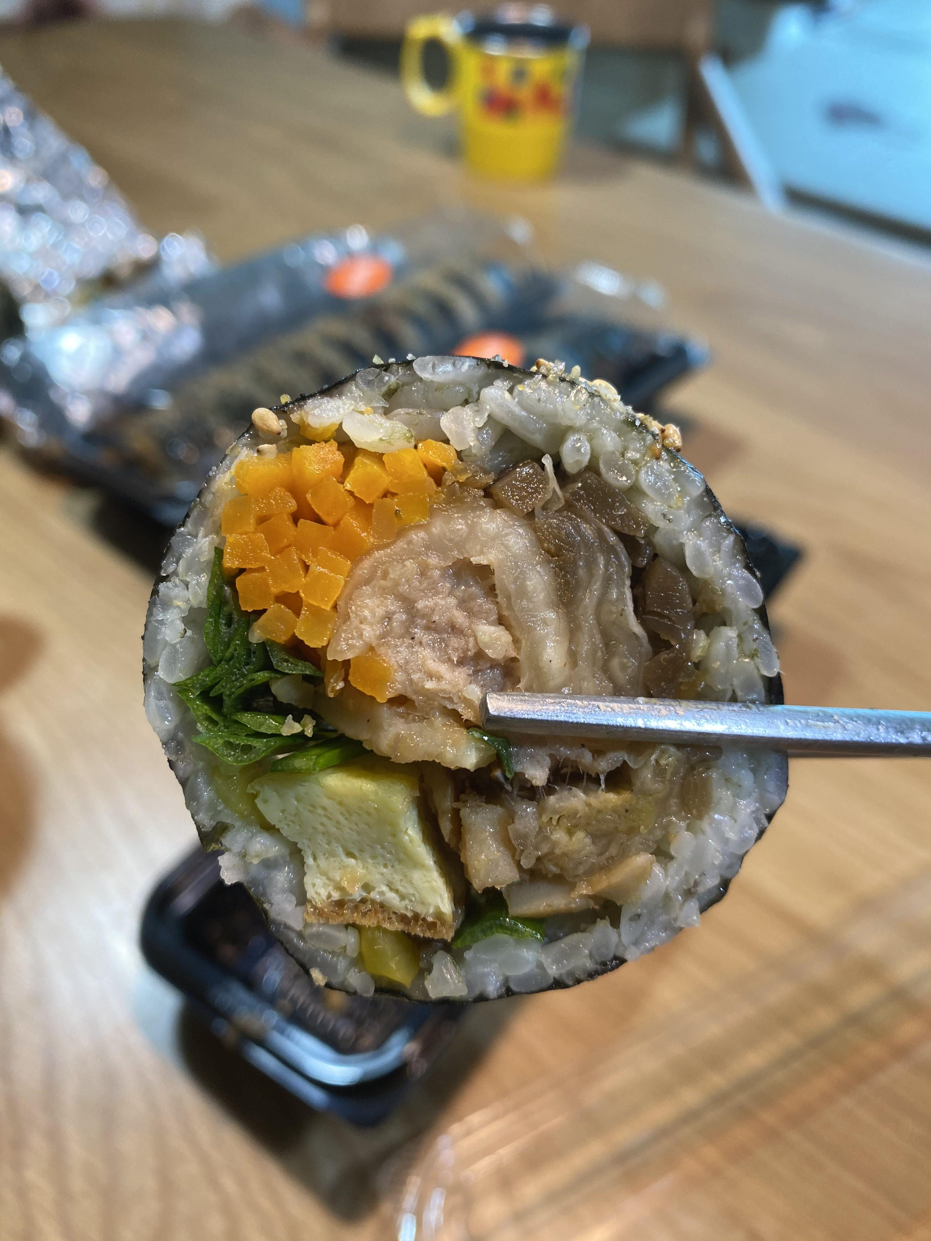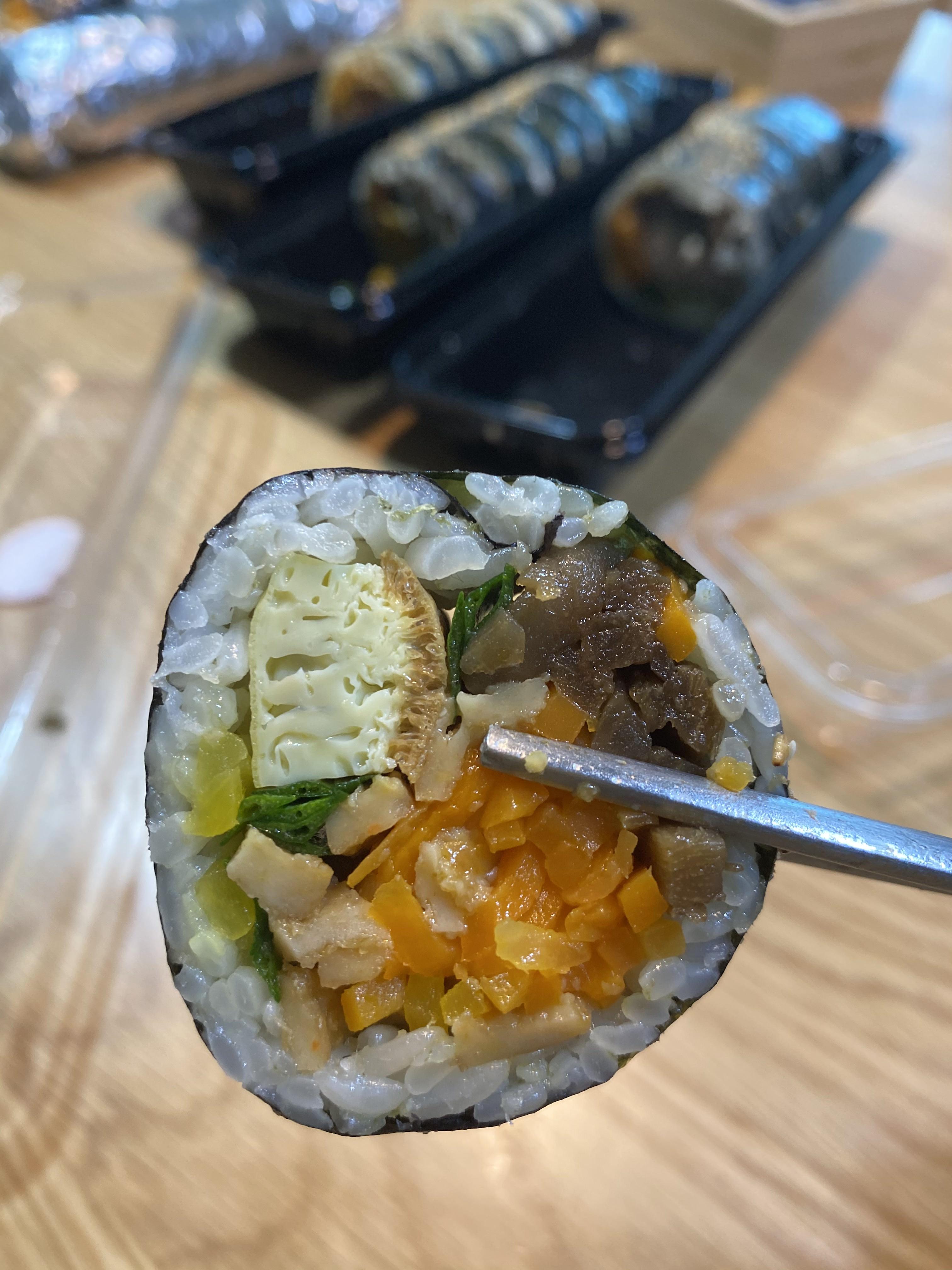 세번 정도 방문했는데, 첫번째 방문이후로는 역시 시그니처 메뉴인 묵은지 참치 김밥만 사오게 되더라구요. 묵은지와 참치의 조화가 아주 좋습니다. 묵은지는 신맛이 나거나, 짠맛이 강하지 않고, 아주 먹기 좋을 정도로 잘 익어서 단맛이 납니다. 참치도 비리거나 뻑뻑함 없이 부드럽구요. 먹어보았던 김치가 들어간 김밥 중 가장 맛있습니다.
