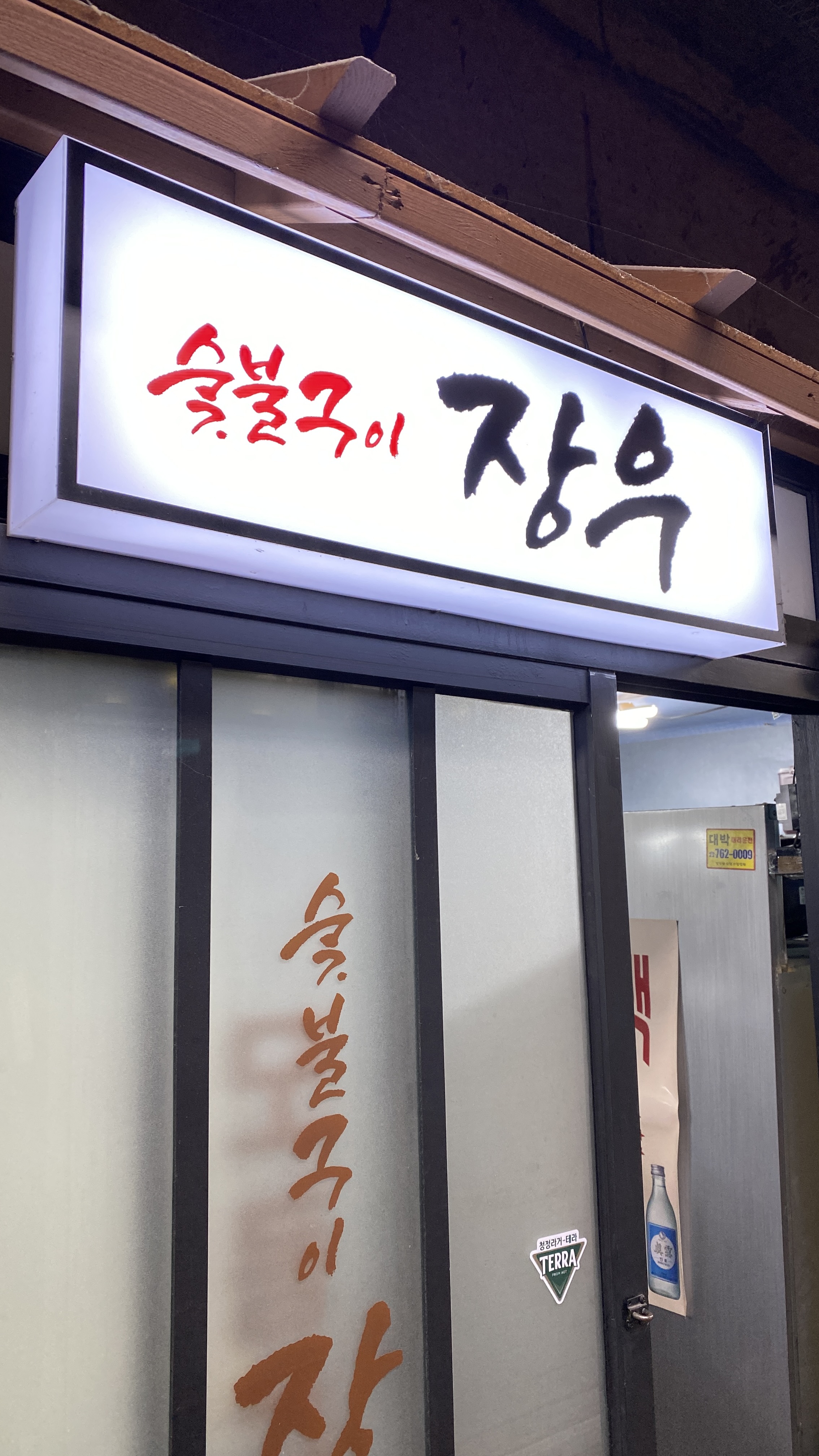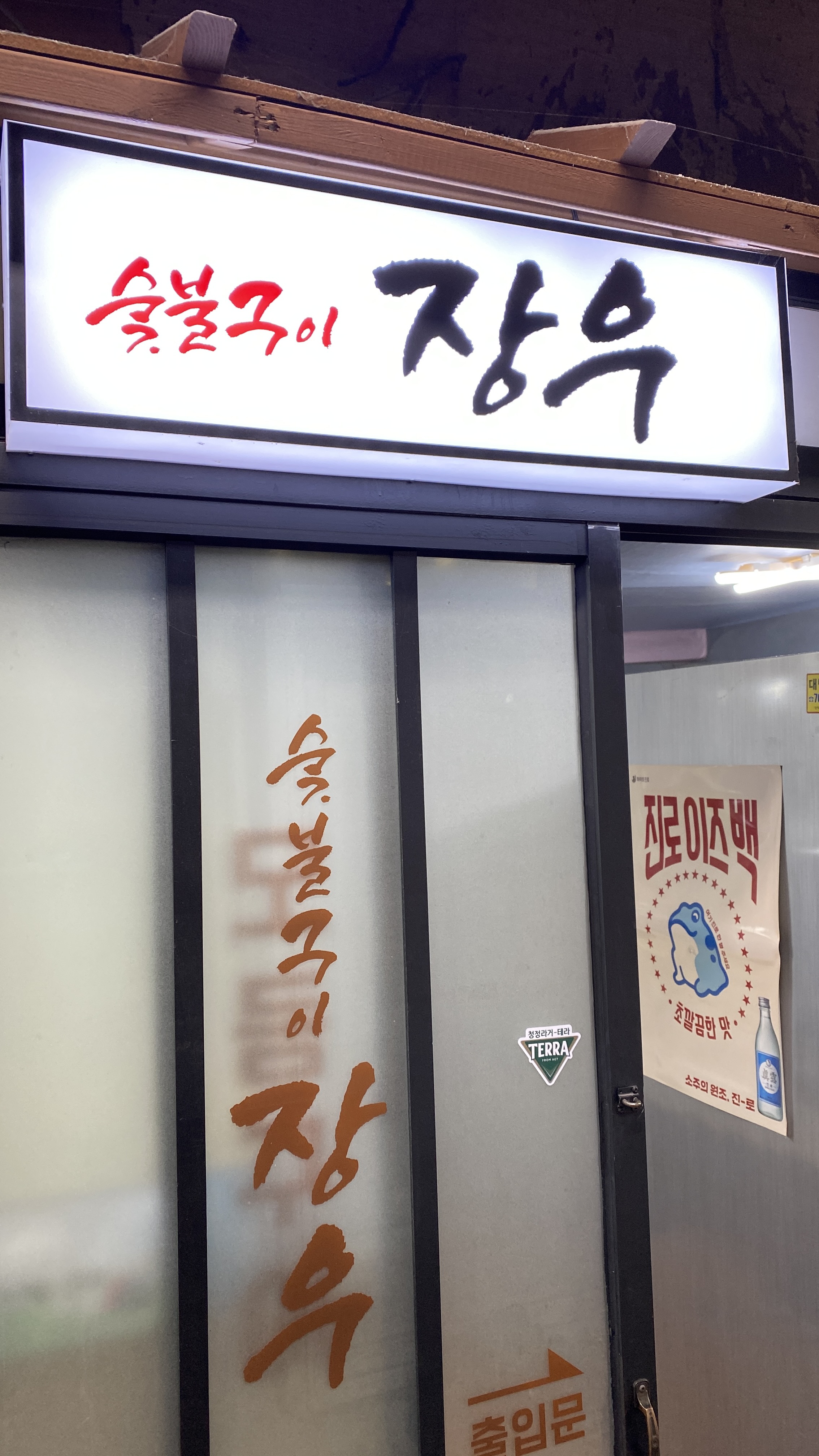 숯불구이 장우 입구입니다. 굉장히 오래된 느낌은 아니지만 나름대로 '뭔가 있을 것 같은' 느낌을 줍니다.