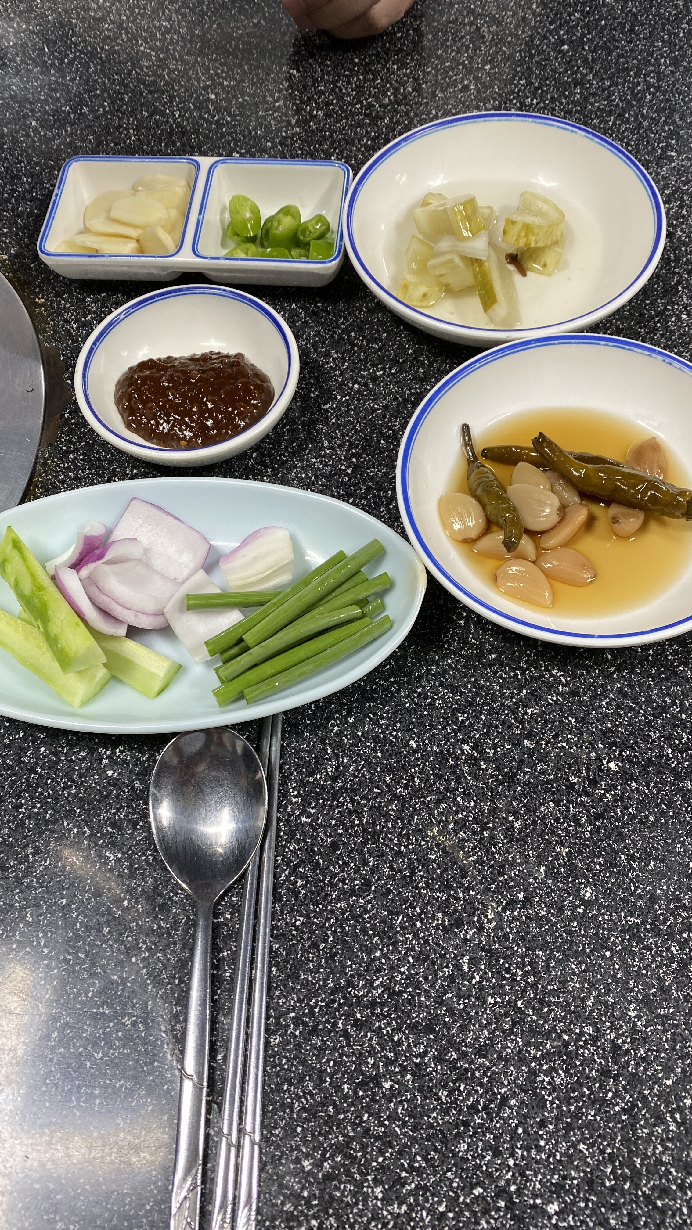 기본찬입니다. 양파, 마늘종 등등을 내어주며, 사진에는 없지만 파절임도 있습니다.