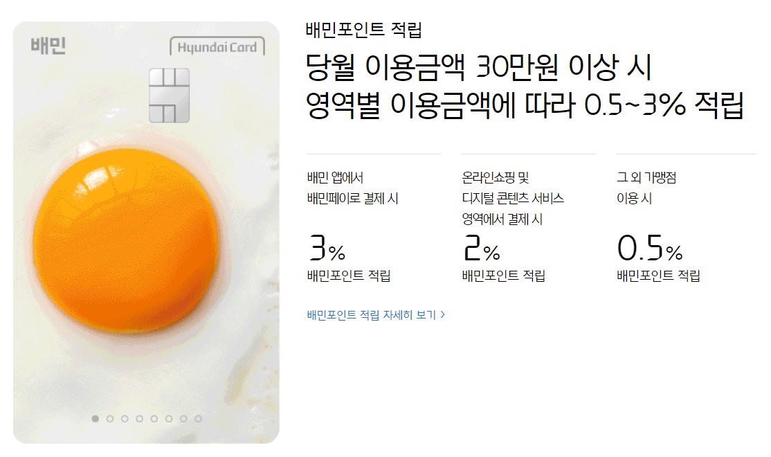 30만원 이상 이용 시 0.5%~3% 배민 포인트를 적립해준다고.