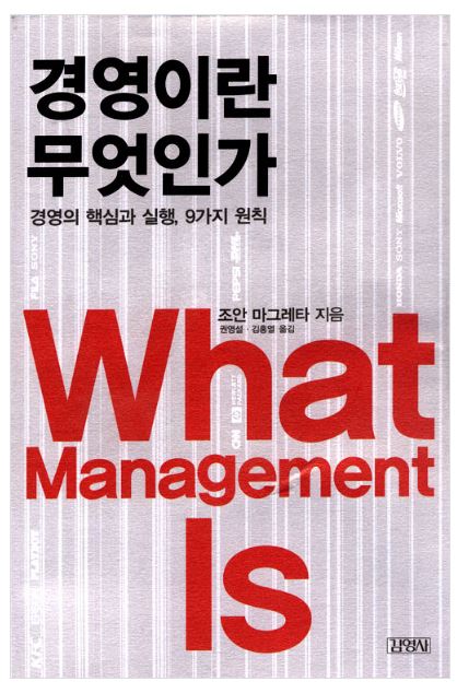 경영이란 한 개인이던 가정이던 기업이던 그 규모와 상관없이 어떠한 환경에서도 올바른 판단을 내릴 수 있는 기본 원칙을 가지고 있을 때 비로소 그 가치가 빛을 발한다. 저자인 조안 마그리타는 "경영이란 무엇인가"를 통해서 이 원칙만 가지고 있다면 커다란 위기가 닥치더라도 쓰러지지 않는 힘을 가질 수 있다고 역설한다.