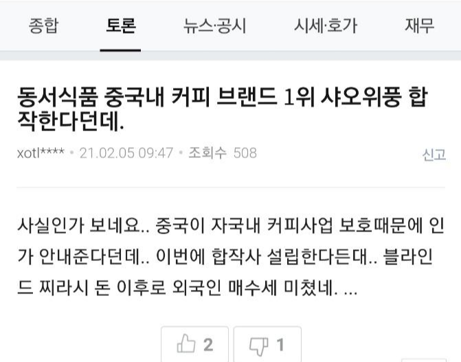 2021/02/11 - [재테크/주식] - 동서 주가 전고점 근접, 임원진의 매도에 주목하자