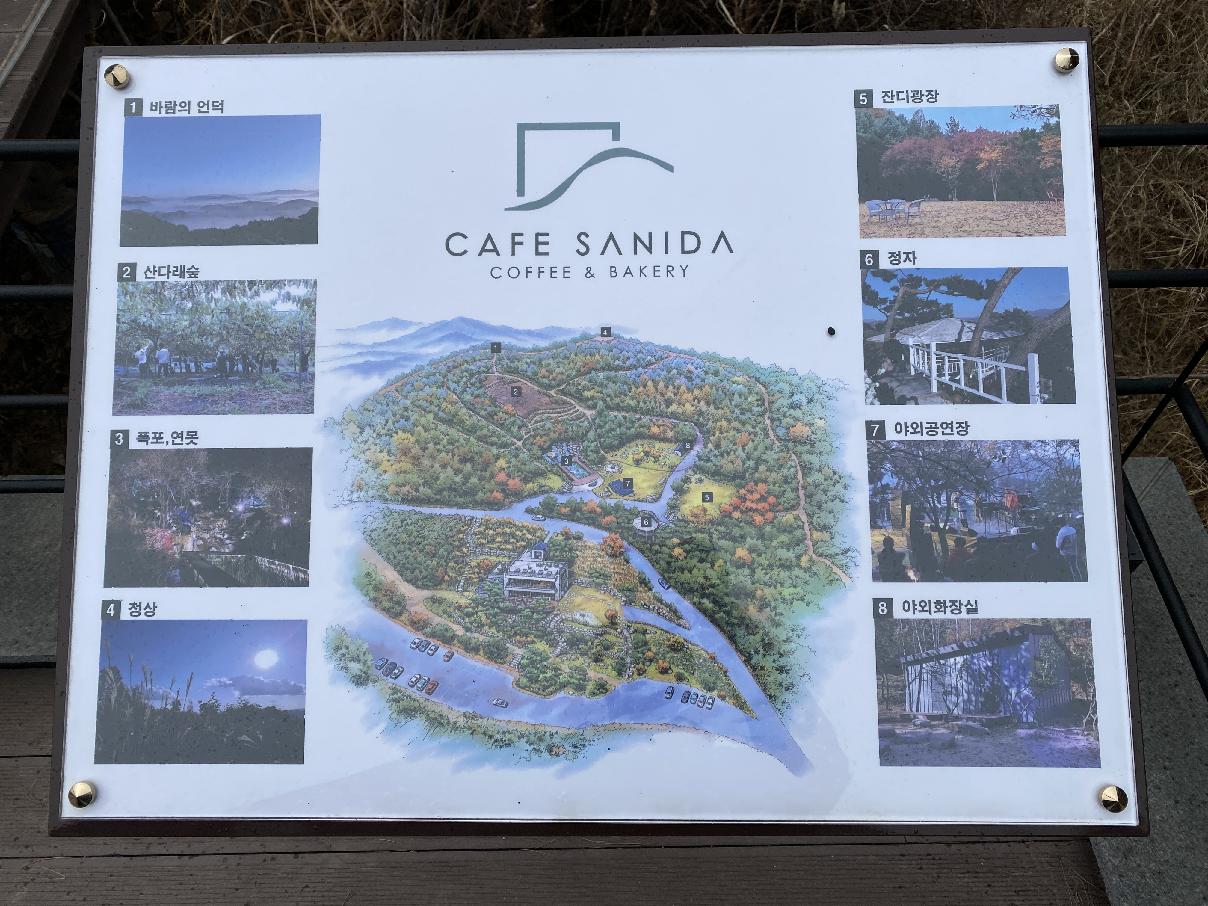 예전부터 가보고 싶었던 사니다 카페를 방문했습니다. 사니다 카페는 해발 280미터의 산 꼭대기에 자리 잡고 있습니다. 전체부지가 약 9만3천㎡에 이를 정도로 넓은 공간입니다. 토지 매입 당시에는 아무 것도 없는 산에 불과했던 곳을 3년여 동안 걸쳐 개발하여 지금의 공간을 만들었다고 합니다.