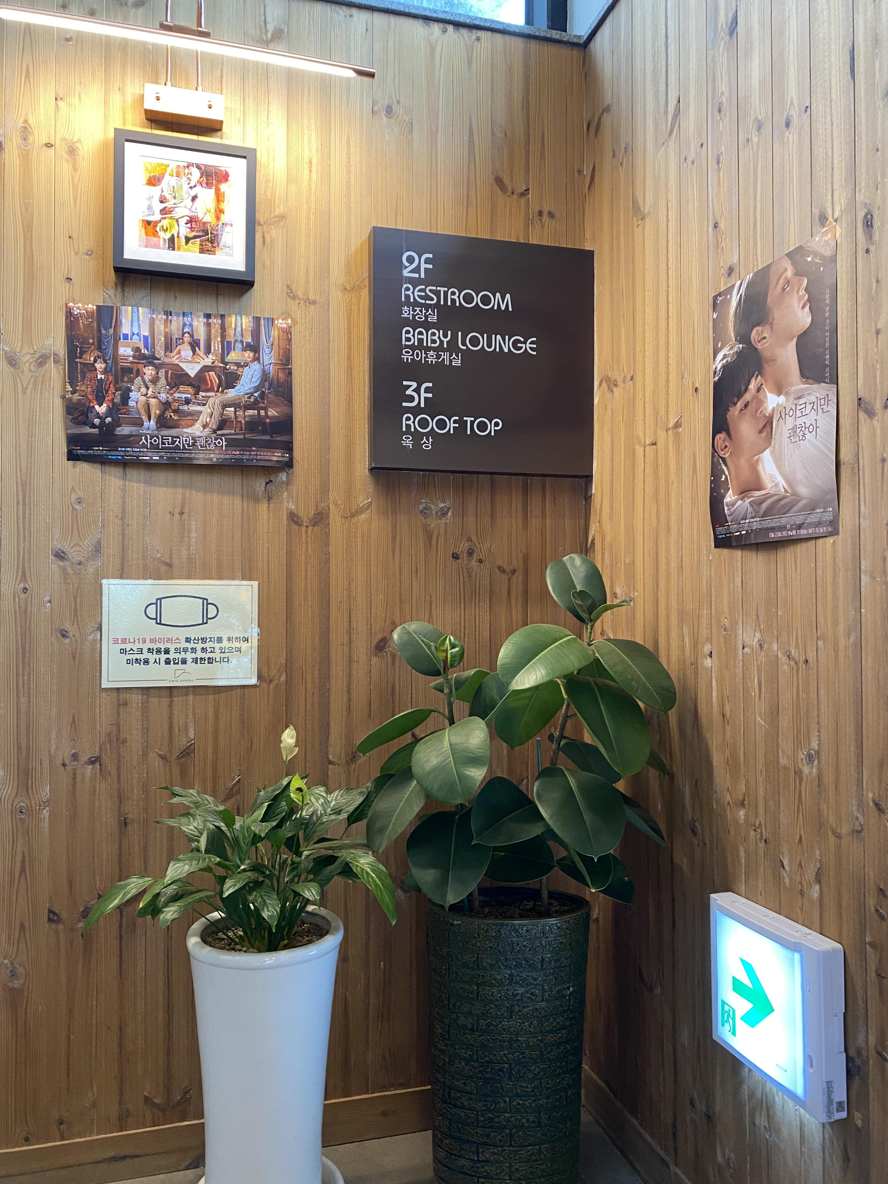 2층으로 올라가는 계단입니다. 최근에 종영했던 김수현 주연의 드라마 사이코지만 괜찮아의 촬영지로도 매우 유명한 곳이라 곳곳에 포스터와 안내문이 붙어 있습니다. 드라마를 좋아하는 분이라면 방문해서 드라마의 기억을 떠올리기 좋을 것 같습니다.