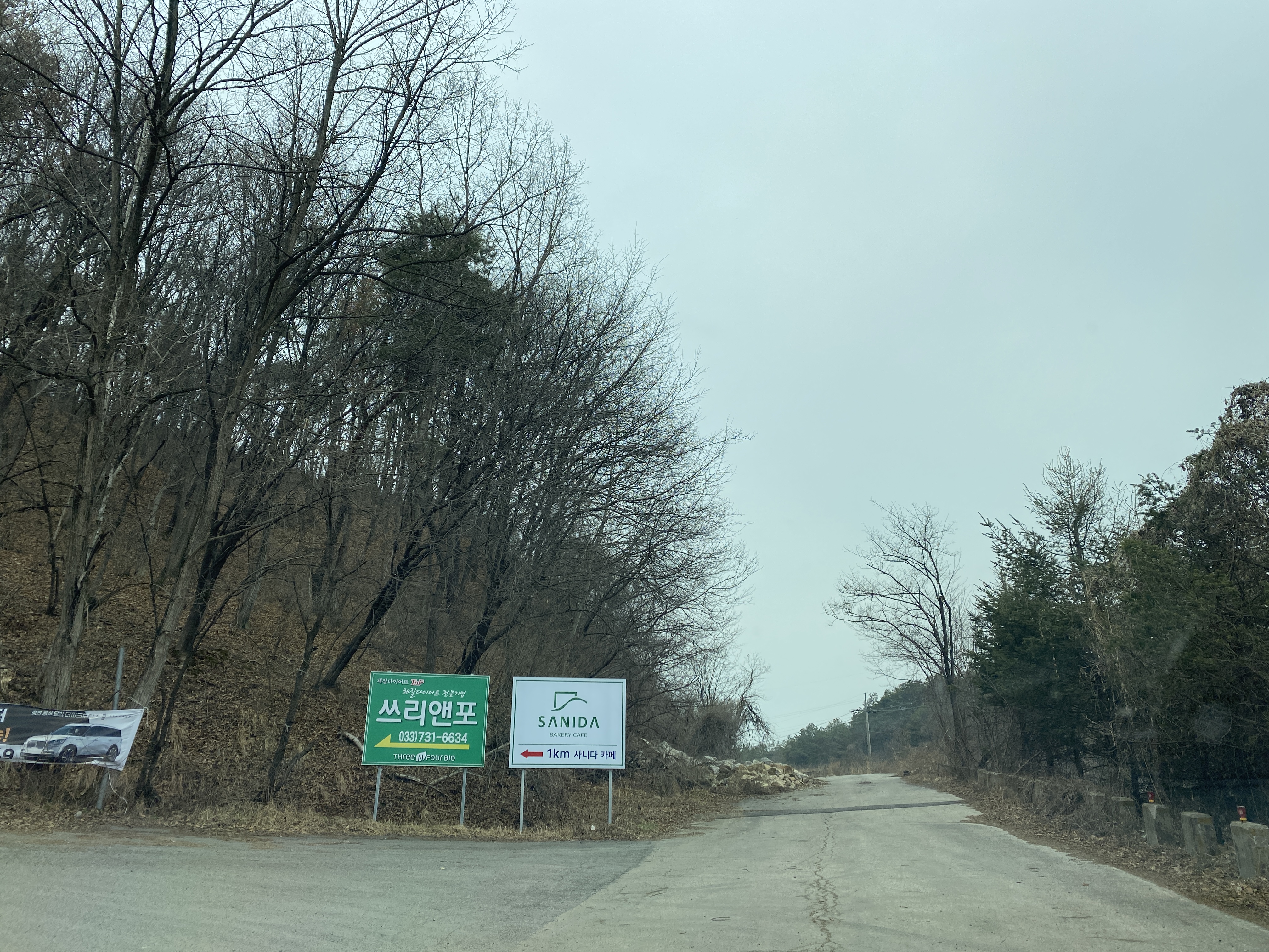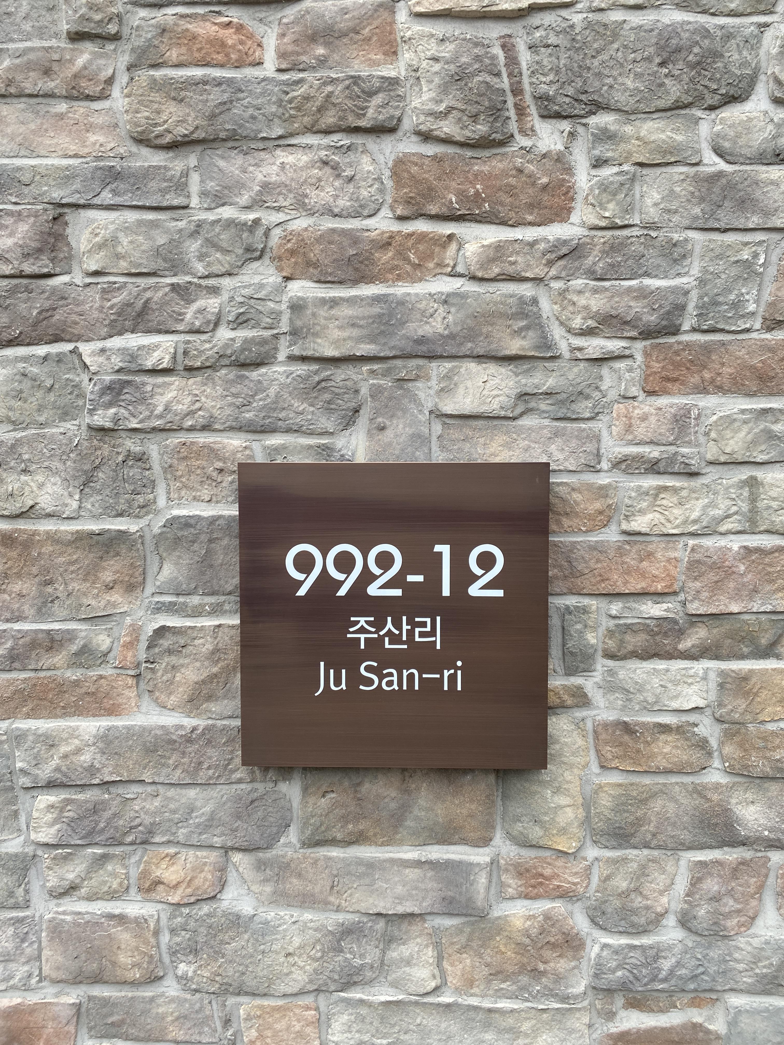 원주 시내에서 약 10~15분 정도 걸리는 호저면에 위치하고 있습니다. 아래와 같이 표지 판이 있구요. 가파른 언덕을 올라가야 합니다. 사니다 카페 옆에서 공사를 진행하고 있기 때문에 대형 트럭도 오가니 과속하면 위험합니다. 천천히 올라가셔야 합니다.
