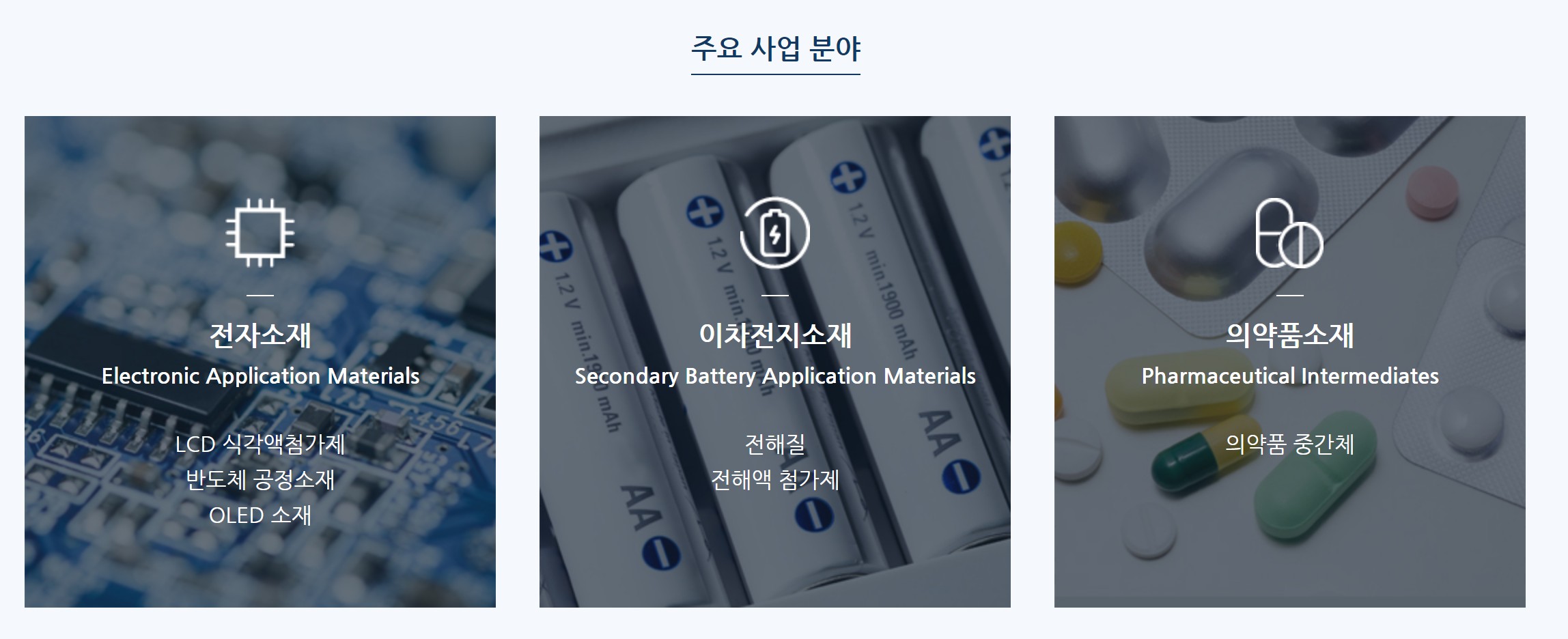 전기자동차와 에너지 저장장치용 중대형 리튬이온전지(LIB)의 전해질로 사용되는 Li 화합물을 생산하여 국내 및 해외 주요 이차전지 제조업체에 공급하고 있습니다.