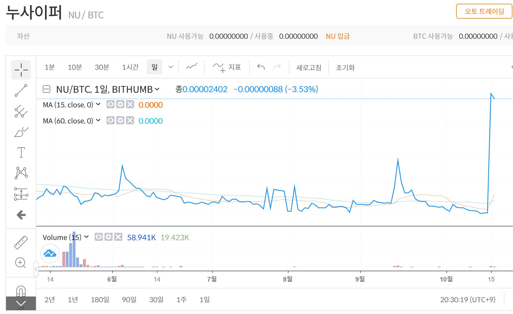 상장 이후 4,000원대까지 상승한 누사이퍼코인은 순식간에 2조원대를 넘어섰으며, 저가는 314원을 기록했습니다. 현재는 1800원대 초반 가격을 형성하며 거래되고 있습니다.
