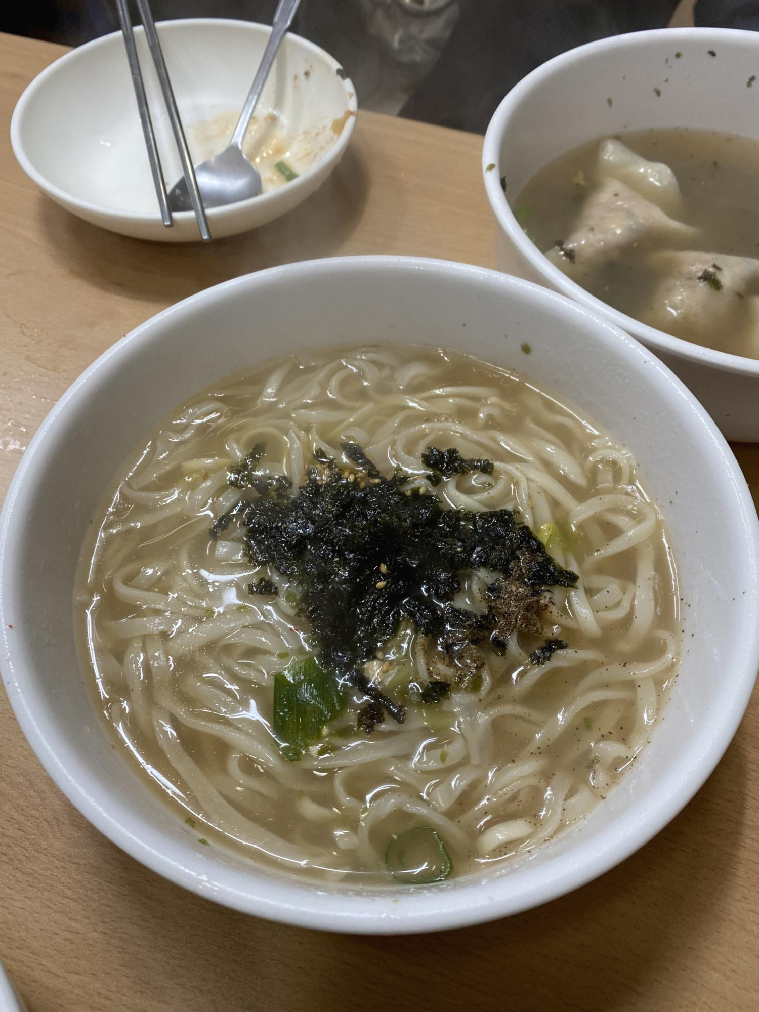 떡볶이 집에 들르기 전 찾아 갔던 칼국수 집. 전에는 (전이라고 해도 아무래도 10여년은 지난 듯하다) 중앙 시장 노점들 사이에 칼국수, 만두를 판매하는 가게들이 많았는데 이제는 거의 사라진 듯 하다. 동생과 그 맛을 보고 싶어 헤매다가 할머니 두분이 운영하시는 가게로 들어갔다. 커뮤니케이션 오해로 만두국이 나왔다가 결국엔 칼국수를 먹었다. 말로 표현하기 어려운 옛날의, 정겨운 맛이 기억 속을 맴도는 느낌이었다. 이제는 원주 중앙시장 칼국수 하면, 보통 사람들은 백종원의 코칭을 받은 어머니 손 칼국수 집을 떠올리지만, 나와 동생에게는 여전히 노점의 이름 모를 칼국수집이 최고이다.
