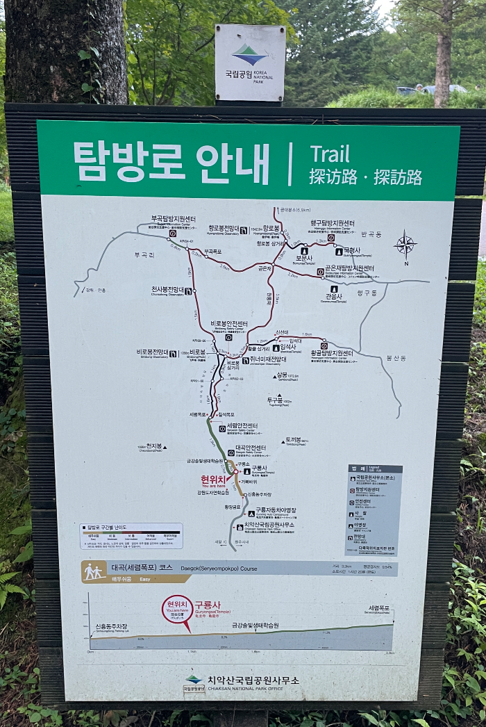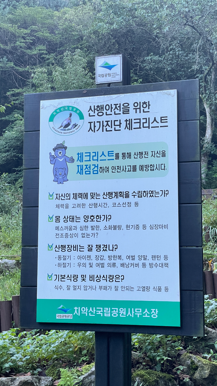 사실 별다른 준비 없이 온 등산이었다. 난이도 표시가 색으로 되어 있었는데, 짙은 색으로 갈수록 어렵다는 의미였다. 비로봉으로 가는 계곡길이나, 사다리 병창길 모두 어려운 길이었지만 둘 중 사다리병창길이 '매우어려움'으로 표기되어 있었다. 잠깐의 고민을 하다가 '사다리병창길'을 택했다. 매우 어렵다고 하지만 계곡길이나 큰 차이가 없을 것이라 생각했다.