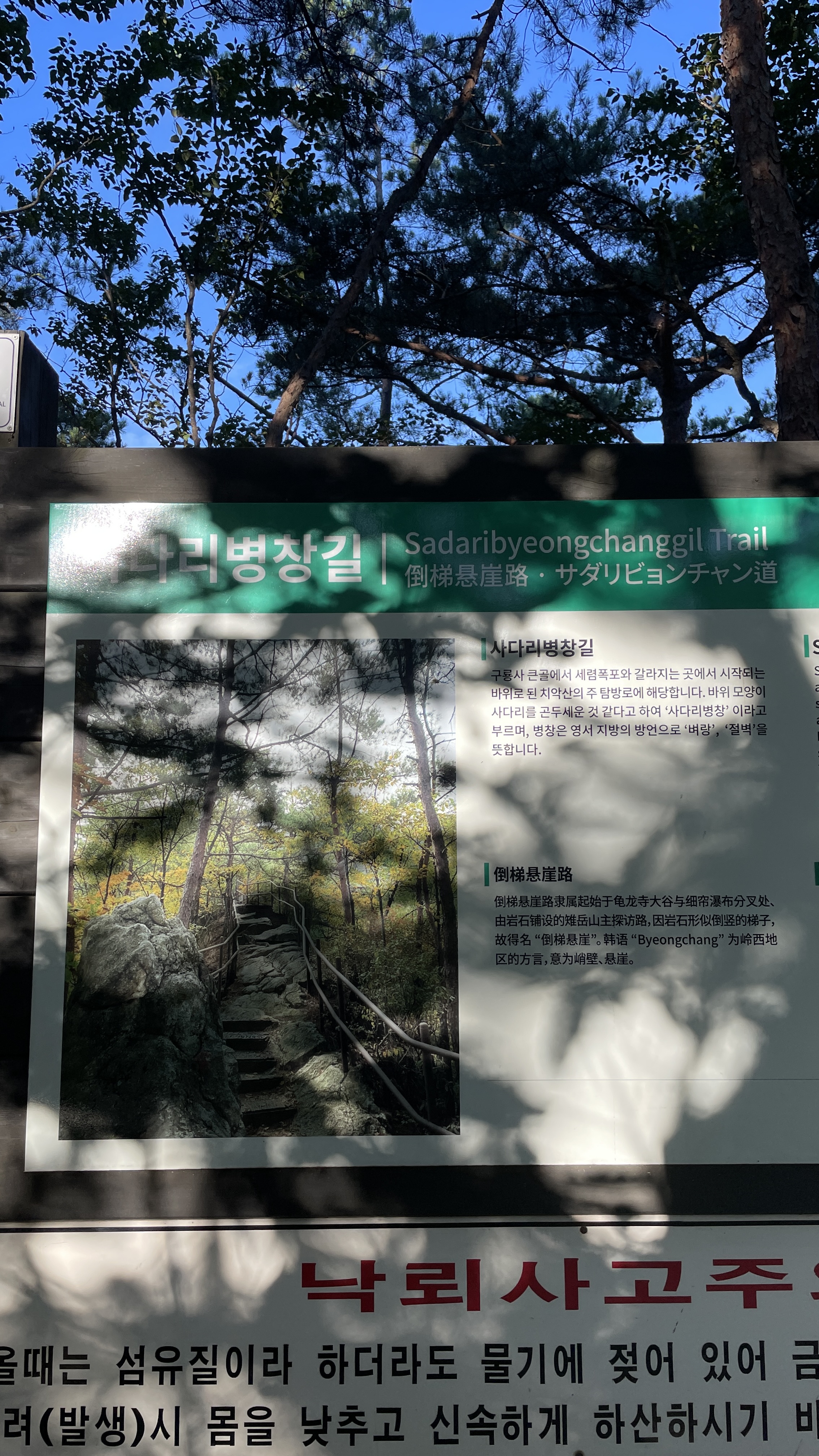 사다리 병창길에 대한 안내문을 살펴보자. 바위로 된 치악산의 주 탐방로로 바위 모양이 사다리를 곤두세운 것 같다하여 '사다리병창'이라고 부른다고. '병창'은 영서지방의 방언으로 '벼랑', '절벽'을 의미한다고 한다.