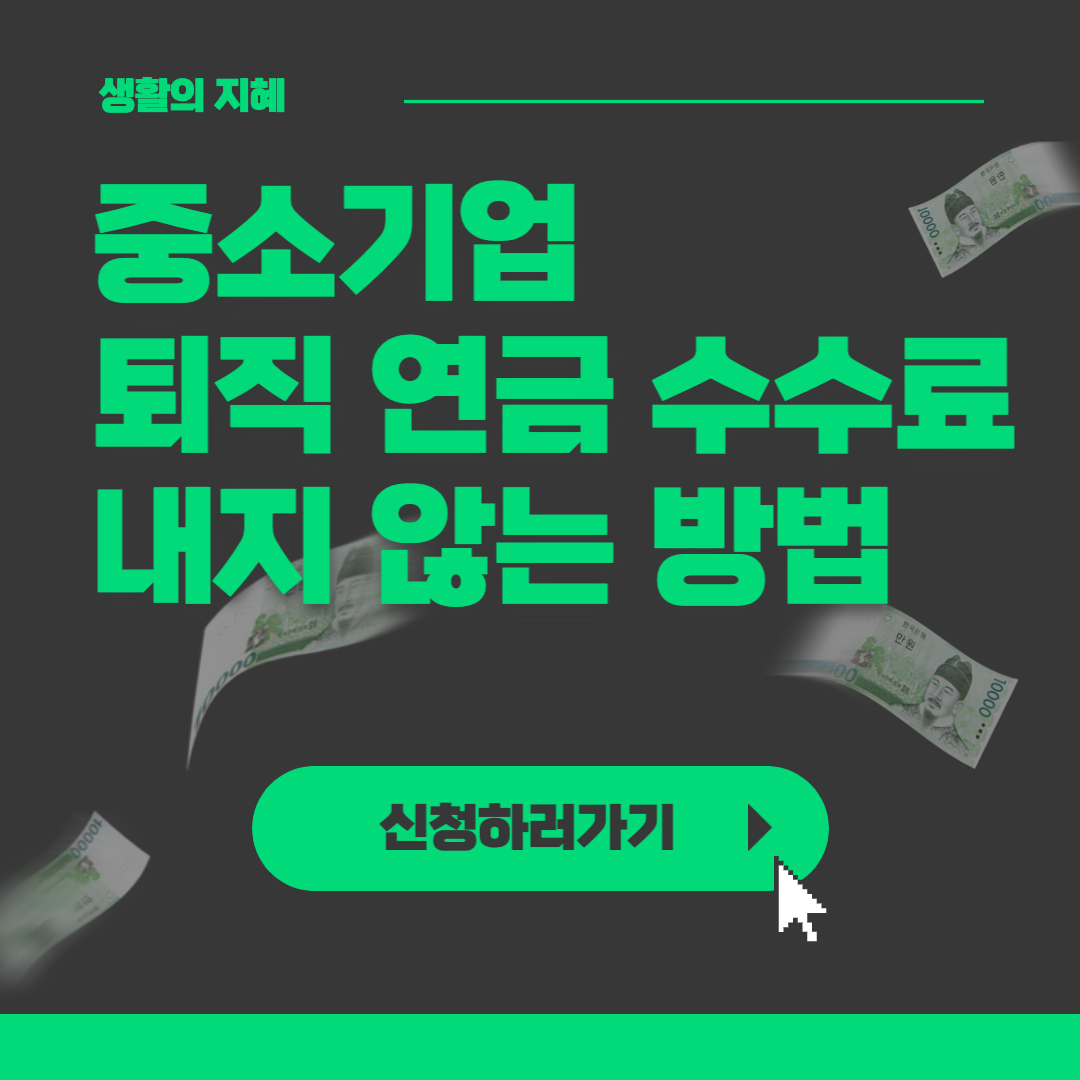 1. 수수료 감면 대상 : 작년 9월부터 올해 말까지 이 제도에 가입한 30인 이하 사업장. (평균 적립금이 5억 원인 사업장이라면 민간 퇴직연금사업자에 가입하는경우 연평균 250여만 원의 수수료를 부담해야 하지만, 이 제도에 가입하면 수수료를 5년간 전혀 납부하지 않아도 됩니다)
