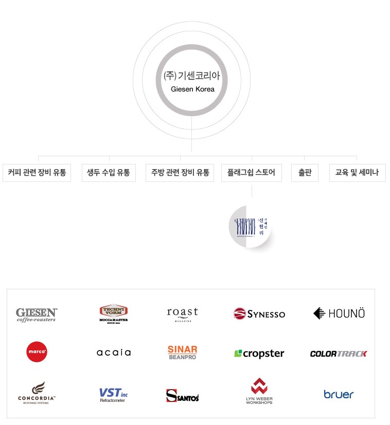 테라로사가 사용하는 에스프레소 머신인 시네소 (synesso), 여러 업체들이 사용하는 기센로스터, 커피 관련 매거진인 로스트 매거진, 생두 수입 유통까지 커피에 관련된 거의 모든 것은 다 하고 있다.
