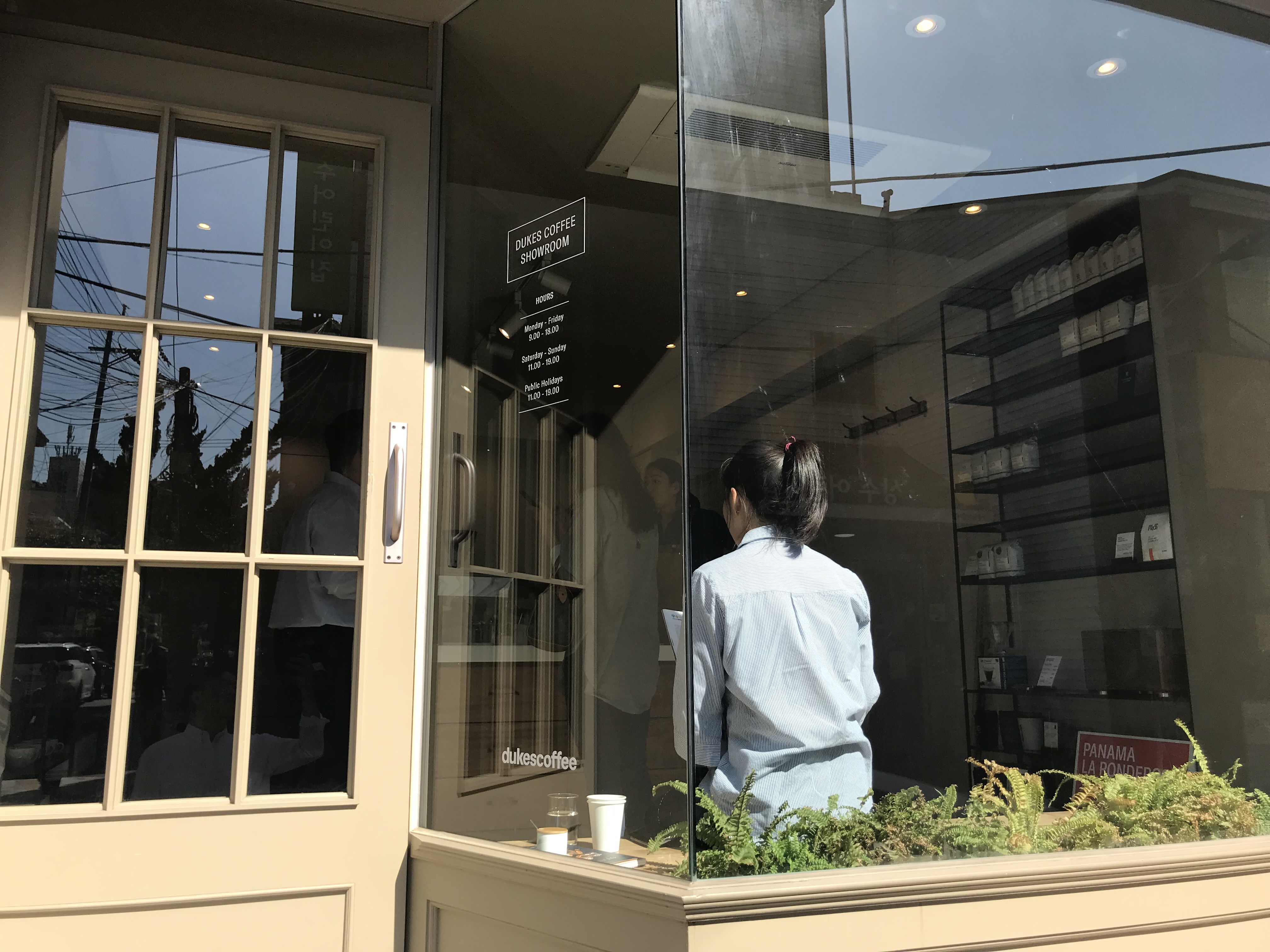 조용히 오래 앉아서 커피를 마시는 분위기라기보다는 말그대로 쇼룸처럼 둘러보고 나가는 정도의 카페라 생각하면 되겠다. 바 (bar) 와 창을 등지고 앉을 수 있는 좌석이 있어 앉아서 이야기할 수는 있다. 커피를 좋아한다면, 한 번쯤 방문해서 바리스타에게 커피 추천도 받아보고, 그들이 내린 커피를 마셔보고, 원두를 구매해서 집에서 내려 먹어보는 것도 좋을 듯 하다.